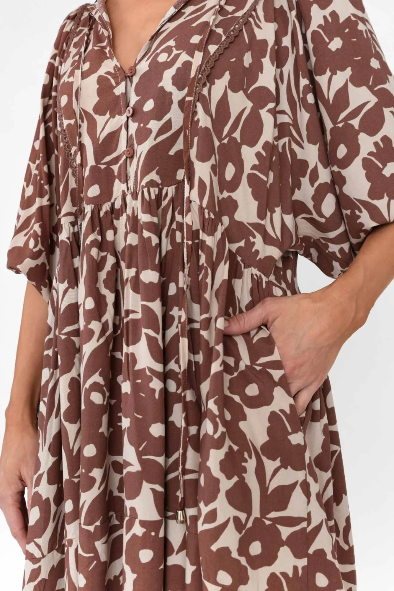 Above Knee Dresses<New U Collection Lyric Brown Floral Pocket Dress
