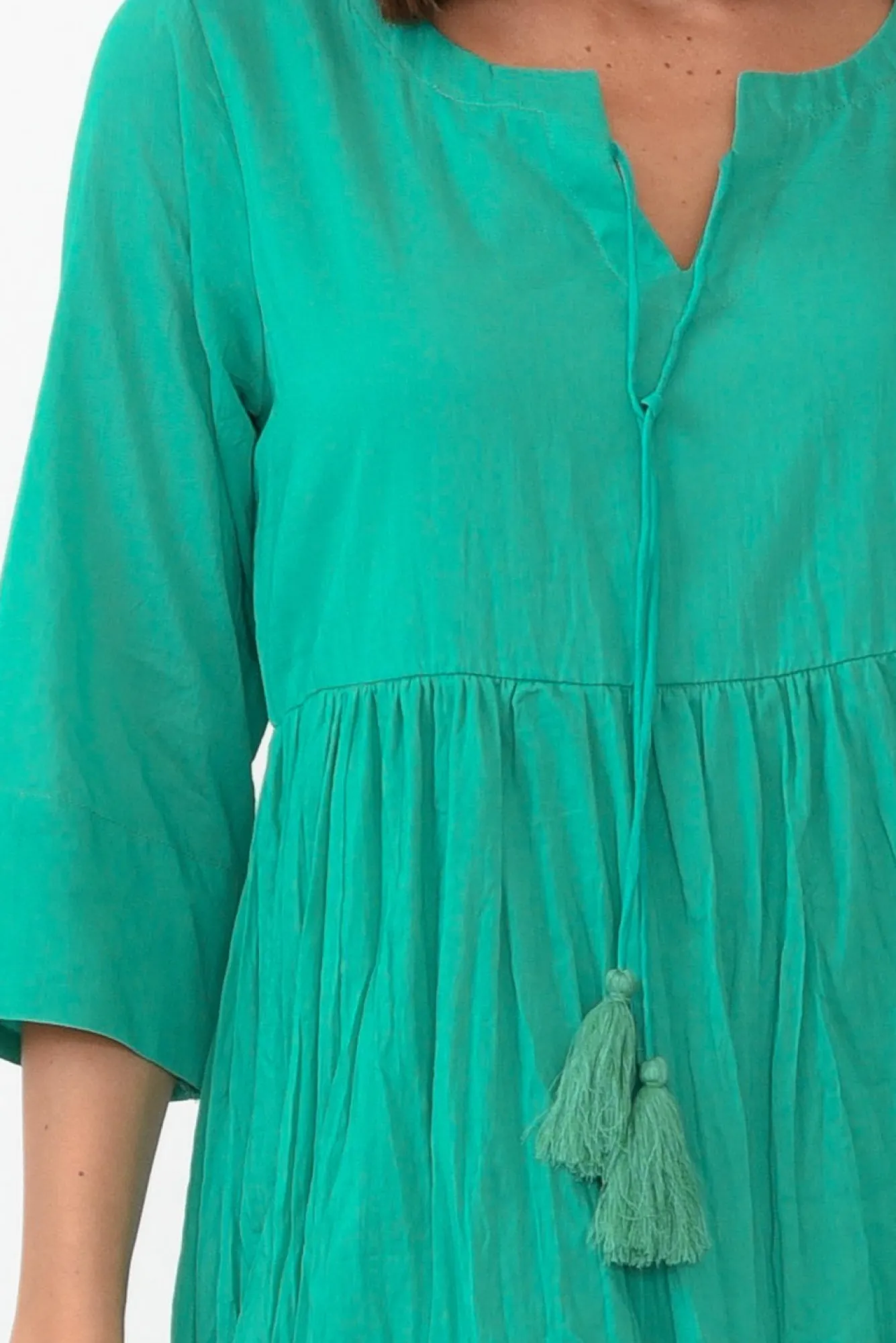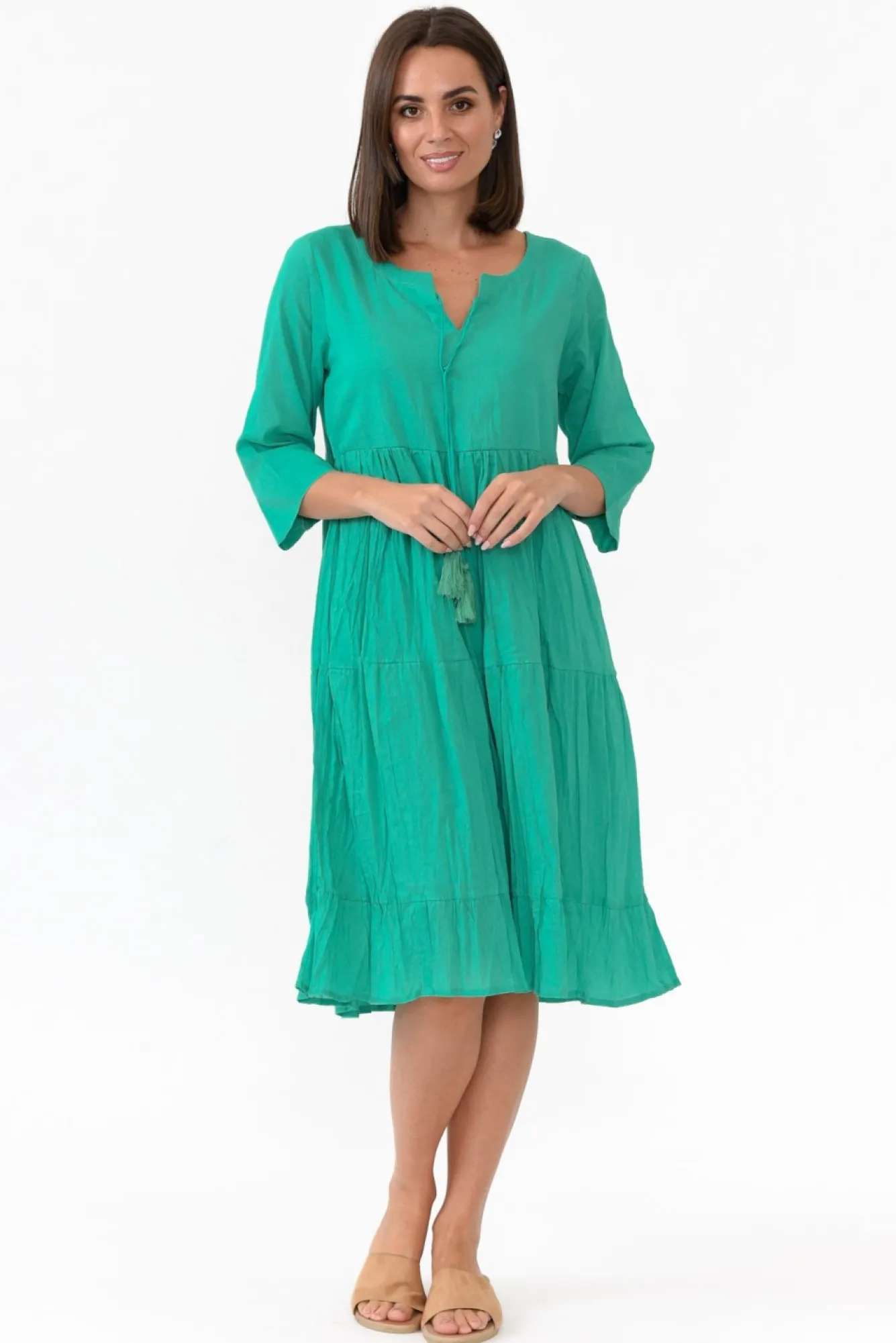 Below Knee Dresses<One Summer Milana Emerald Crinkle Cotton Dress