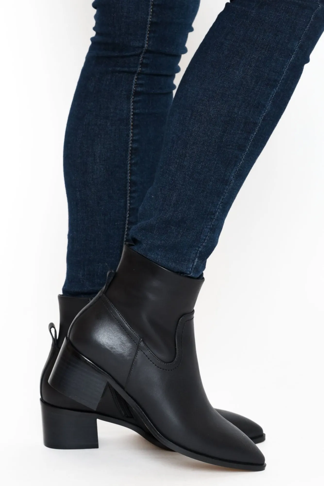 Runs Small: If In Between Sizes Or Have A Wider Foot, We Recommend Sizing UpNNfit: Narrow – StandardNa Gorgeous Leather Ankle Boot, Ideal To Pair With Any Winter Outfit!Nfeatures Unique Curved Stitching And A Pointed Toe Which Elongates FootNblack Zipper With Gold Detailing On The Inner SidesNchunky Black Heel Provides StabilityNNlightly Scored Sole And Rubber Heel Are Non-SlipNclassic Black ShadeNupper: LeatherNlining: Leather & TextileNsole: Man-Made Nheel Height: 5.1CmNNshoe Care: Use A Water And Stain Repellent Spray To Protect Before Wearing. Clean With A Damp Cloth.