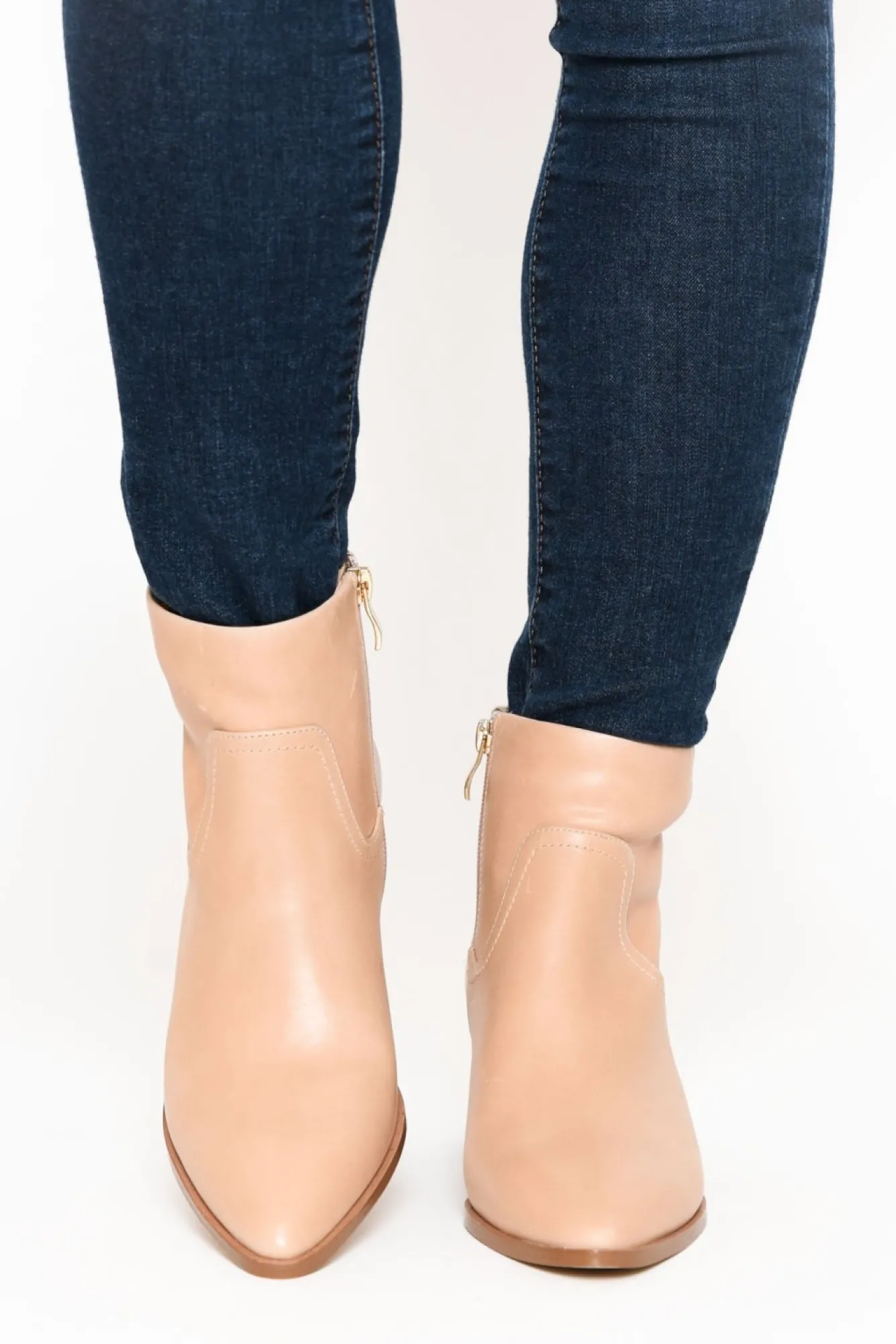 Runs Small: If In Between Sizes Or Have A Wider Foot, We Recommend Sizing UpNNfit: Narrow – StandardNa Gorgeous Leather Ankle Boot, With A Timeless Appeal!Nfeatures Unique Curved Stitching And A Pointed Toe Which Elongates FootNnude Zipper With Gold Detailing On The Inner SidesNpull Tab To Help Slide Into The BootNchunky Wood-Like Heel Provides StabilityNNlightly Scored Sole And Rubber Heel Are Non-SlipNlovely Nude ShadeNNupper: LeatherNlining: Leather & TextileNsole: Man-Made Nheel Height: 5.1CmNNshoe Care: Use A Water And Stain Repellent Spray To Protect Before Wearing. Clean With A Damp Cloth.