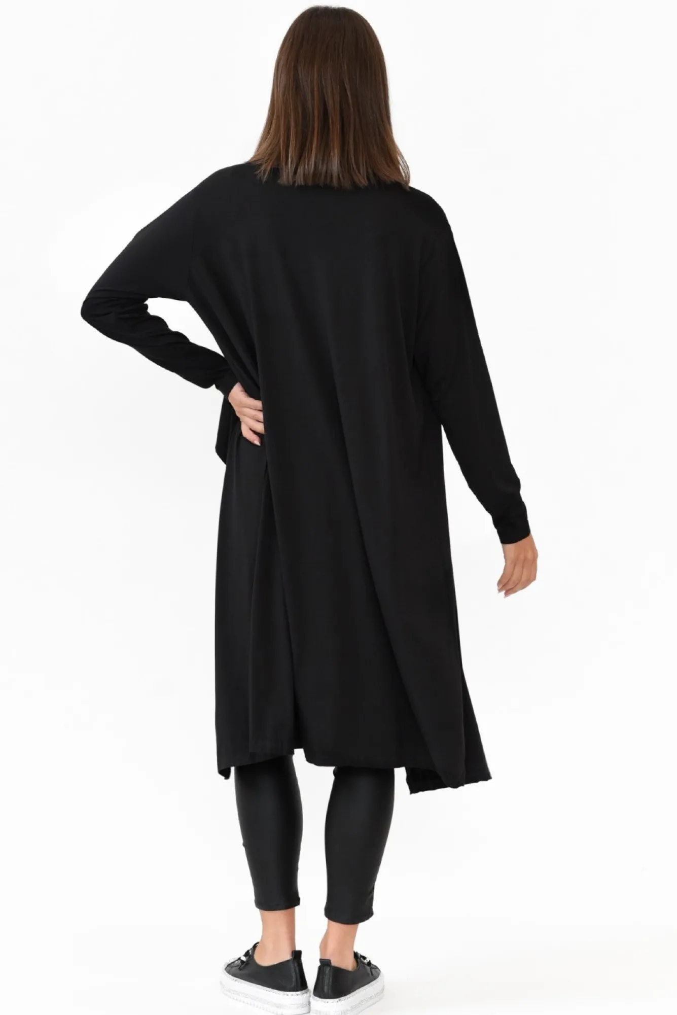 Fit: True To Size. Refer To Size & Fit Tab Below For Specific Size Recommendation NNNfabric: 95% Bamboo Viscose 5% Spandex Nmidweight Bamboo Fabric Designed With A Comfortable Stretch, Boasting Wonderful Breathability And A Soft Hand Feel Nfeature Waterfall-Style Collar Nlongline Open-Front Design – Perfect For Layering Through The Seasons! NNlong Sleeves For Perfect Coverage NNfalls Just Above The KneeNNcare: Cold Gentle Hand Wash RecommendedNNcolour: Classic Black