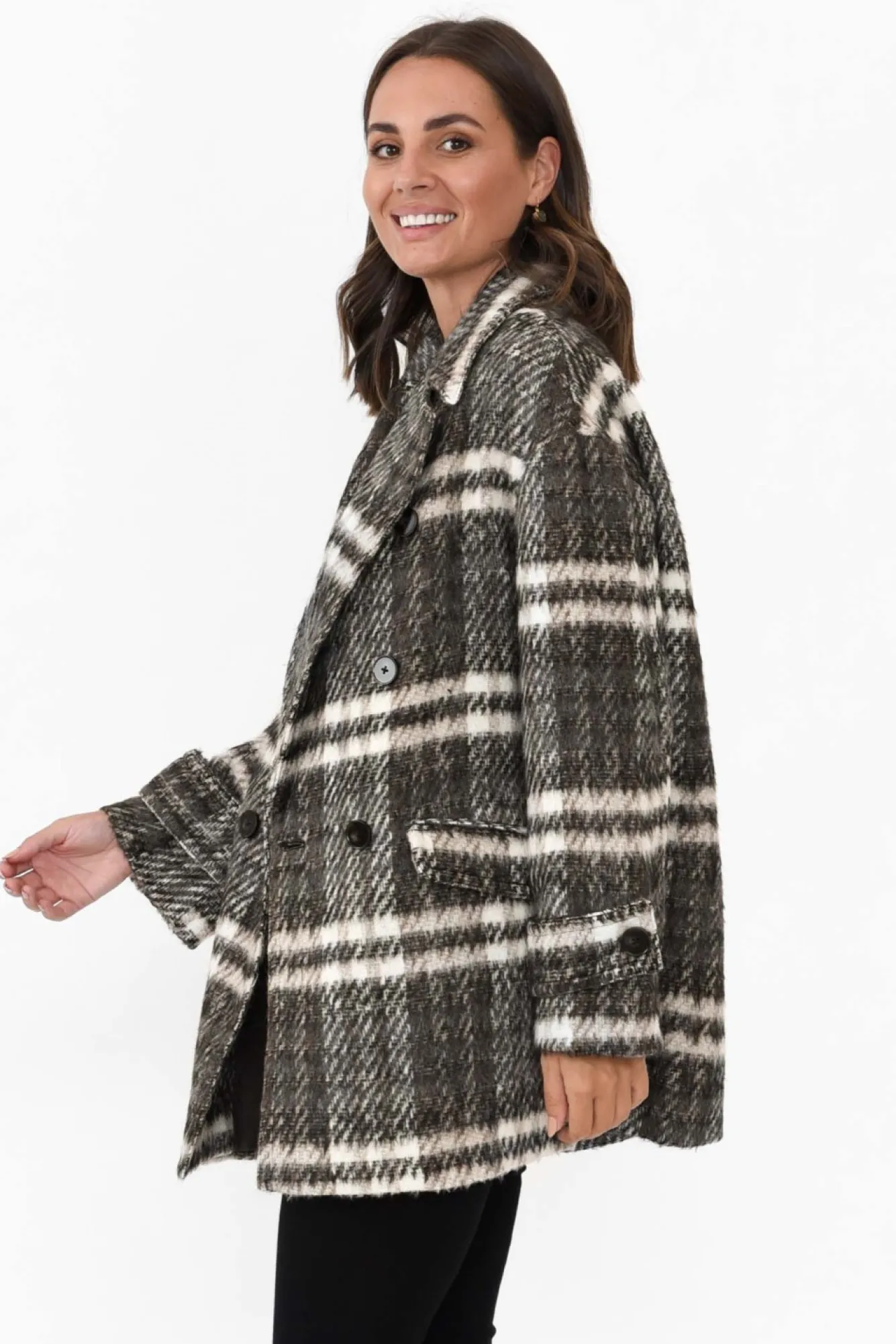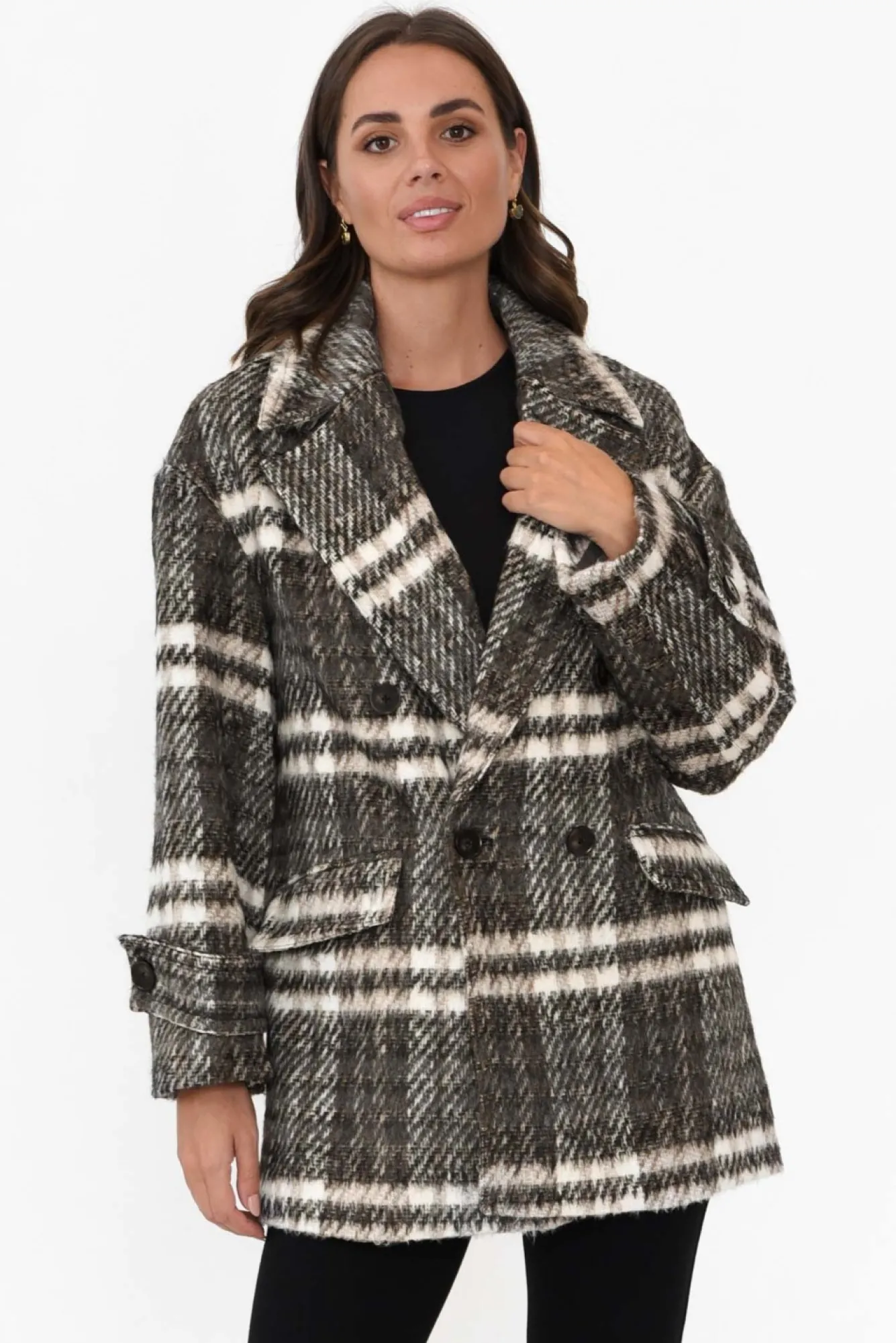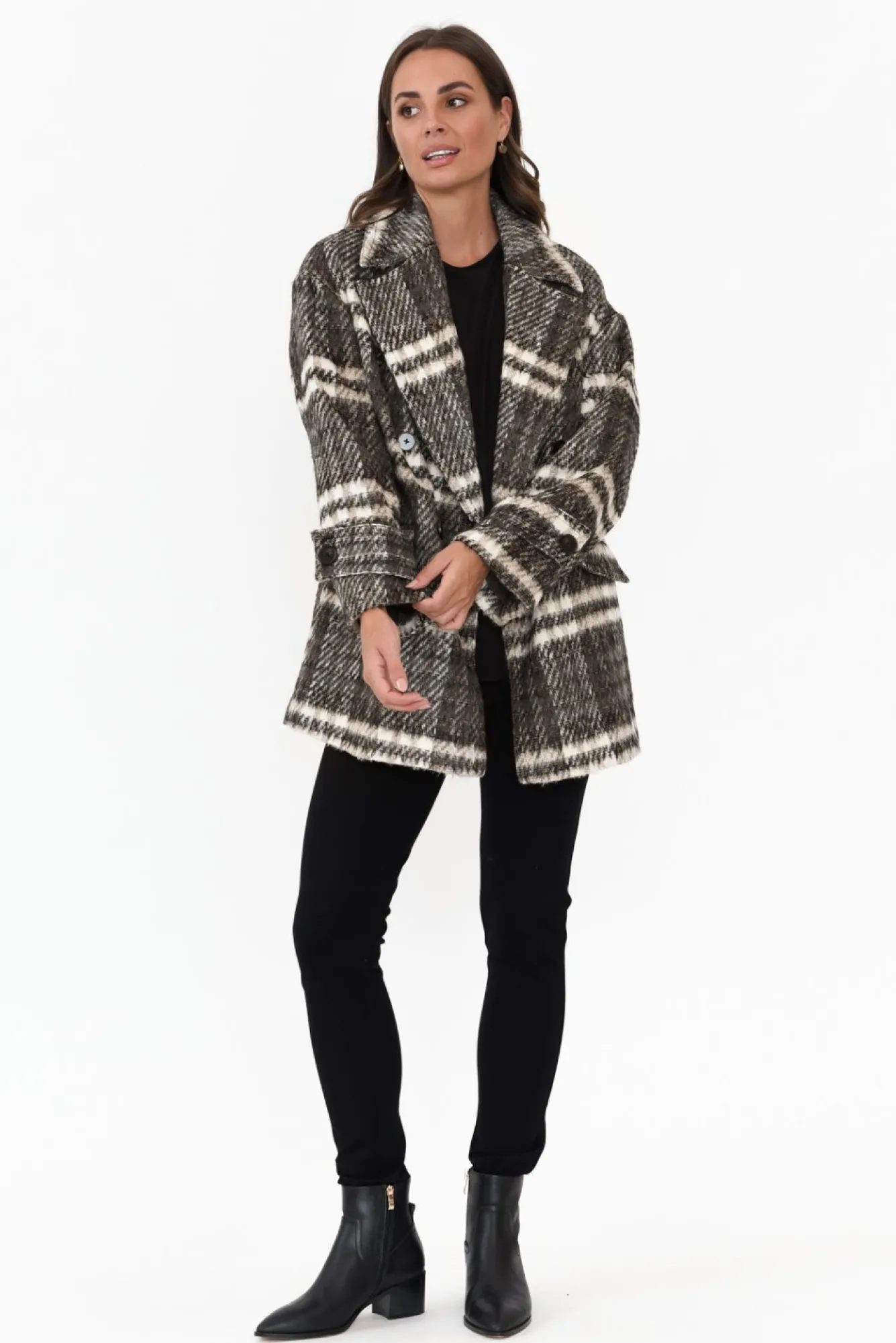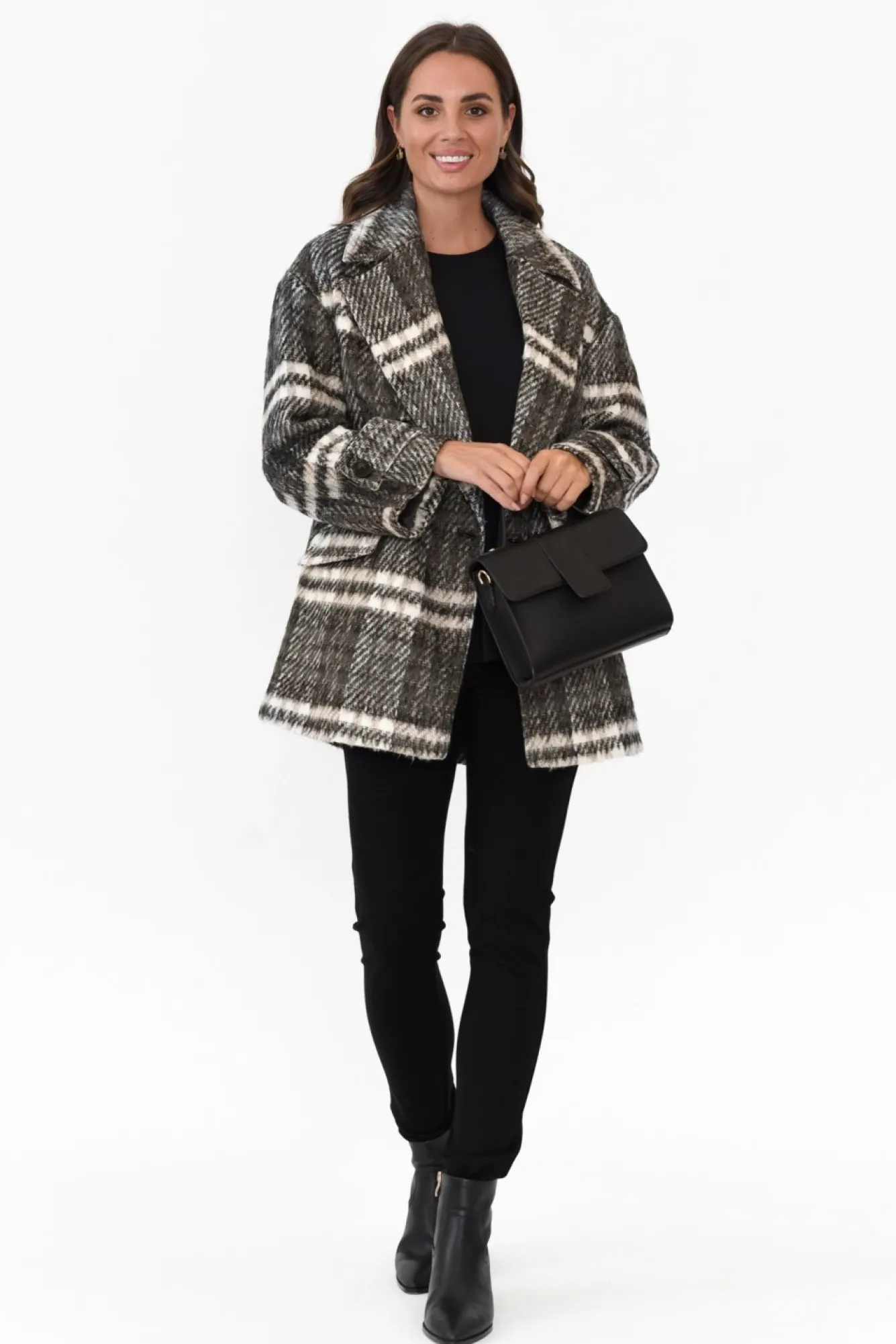 Coats<Fate Becker Songbird Charcoal Check Oversized Short Coat