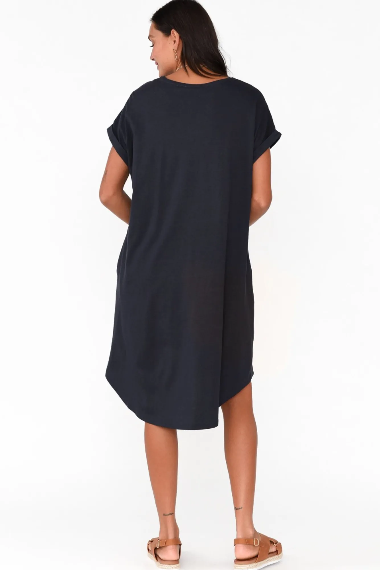 Fit: True To Size. Refer To Size & Fit Tab Below For Specific Size RecommendationNNfabric: 100% Cotton Nlightweight, Breathable, 100% Australian Cotton With A Soft Finish And A Subtle StretchNhigh, Rounded Neckline NNshort Cap Sleeves With A Rolled Hem Create A Casual Look Ntimeless Straight Silhouette Flows Over CurvesNNtwo Hip Pockets NNhi-Lo Hem Sits Just Above The Knees At The Front And Lower At The Back NNcare: Cool Gentle Machine Wash RecommendedNNcolour: Blue-Toned Charcoal