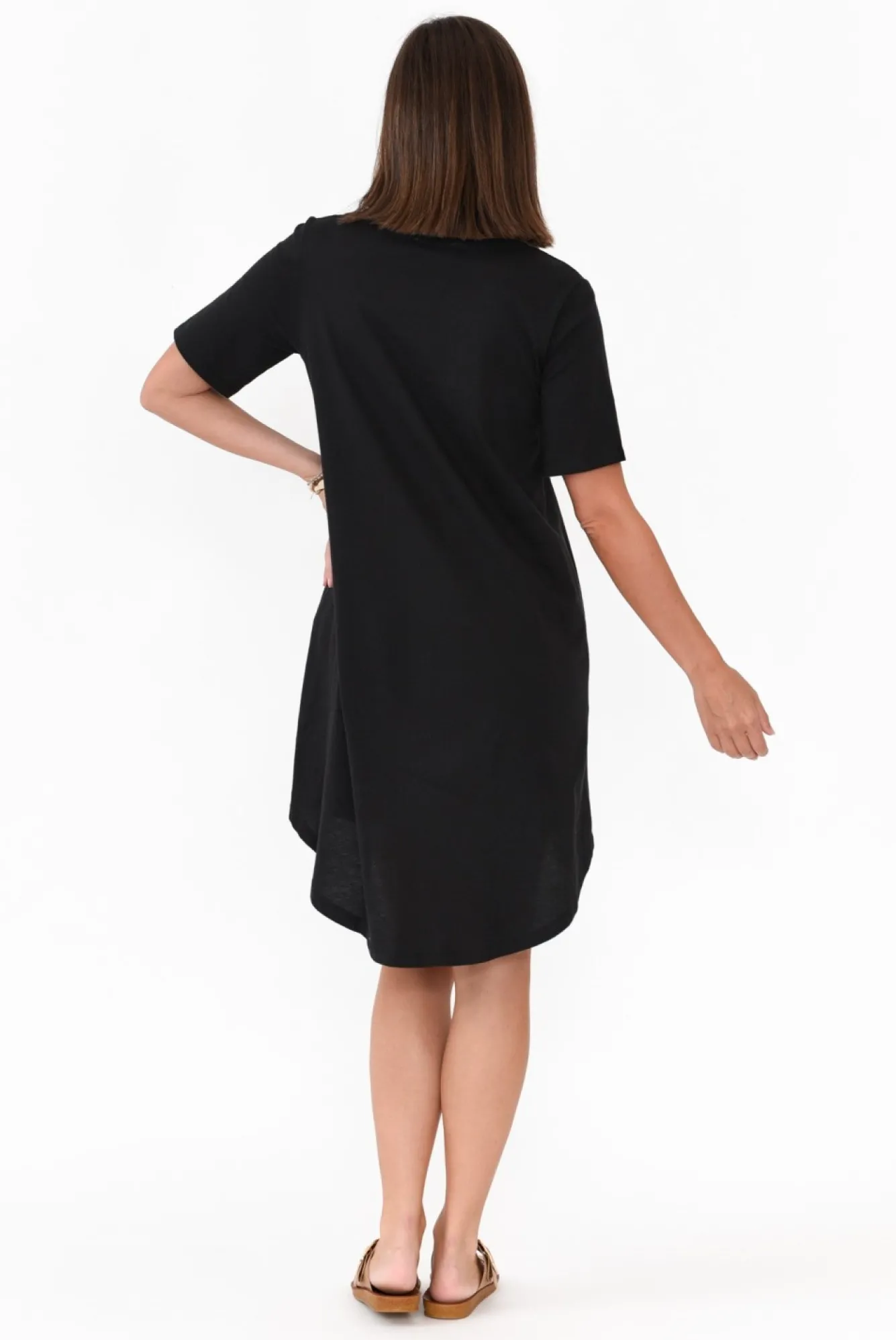 Fit: True. Refer To Size & Fit Tab Below For Specific Size Recommendation NNfabric: 100% CottonNlightweight, Soft, Stretchy And Breathable CottonNsimple Round NecklineNNshort Tee SleevesNtwo Discreet Pockets Located At The HipNsubtle A-Line SilhouetteNcurved Hi-Lo Hemline Falls Just Short Of The KneeNNcare: Cold Gentle Machine Wash RecommendedNNcolour: Classic Black Shade
