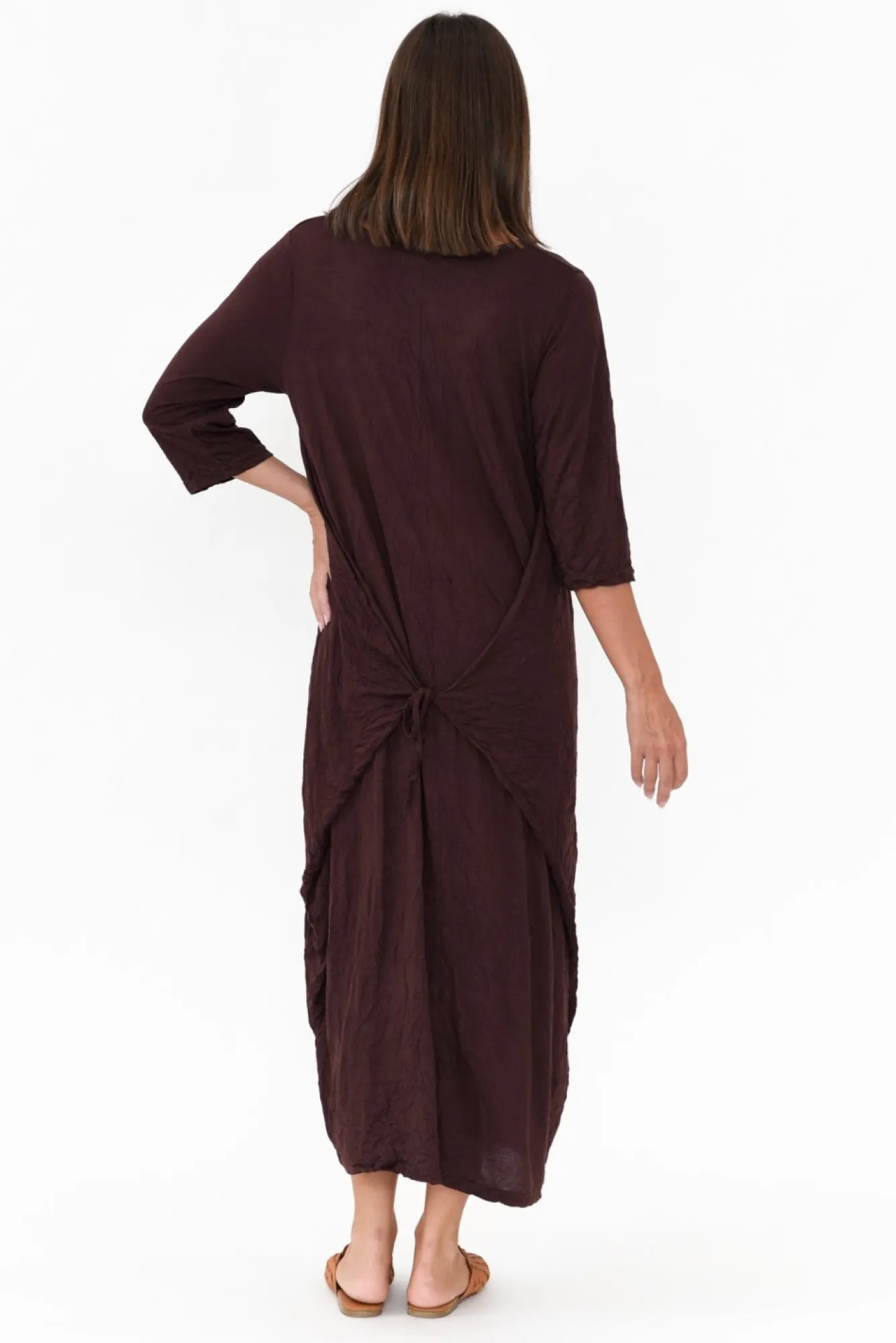 Cotton Dresses<Cotton Village Ellis Chocolate Crinkle Cotton Tie Dress