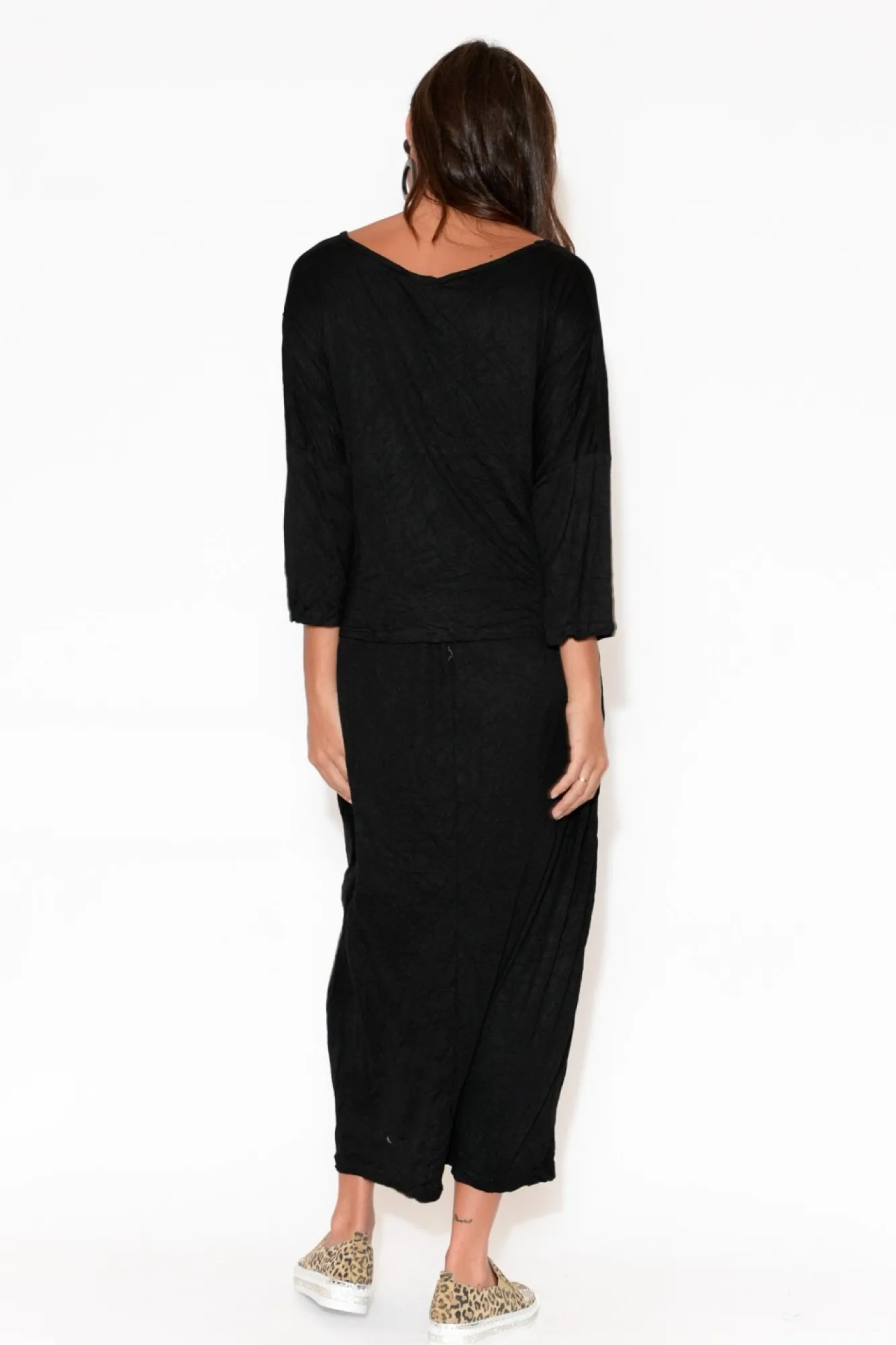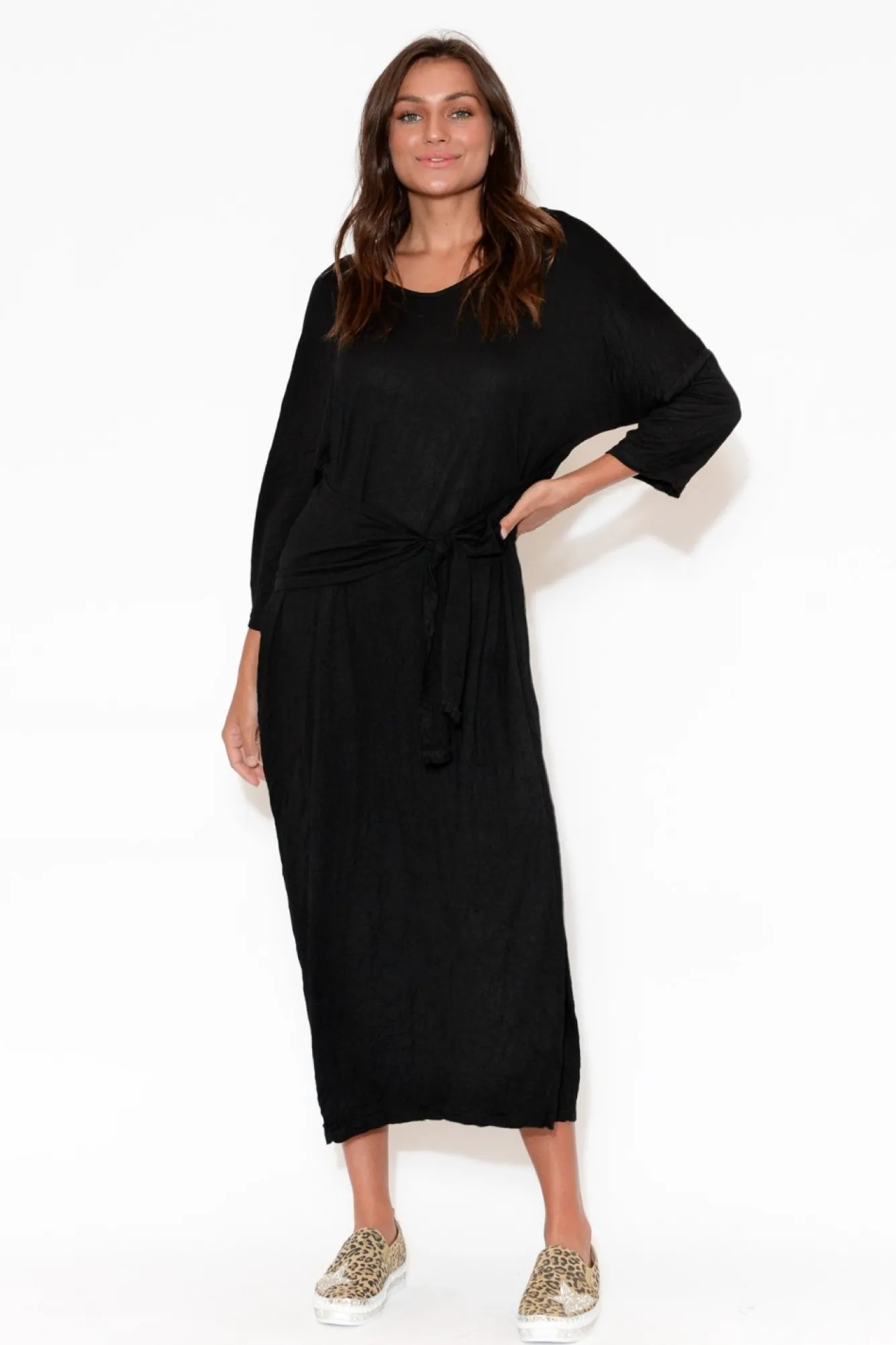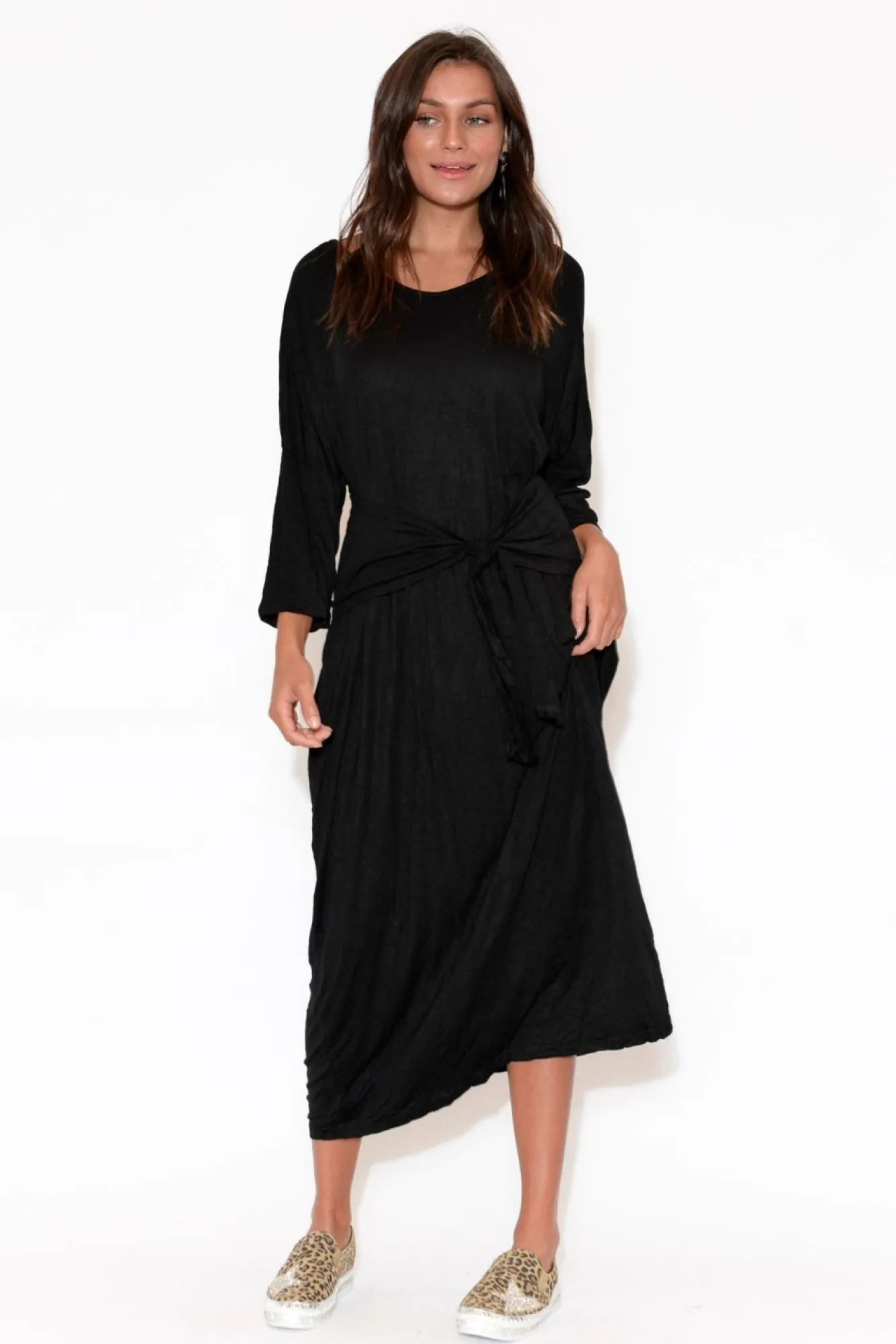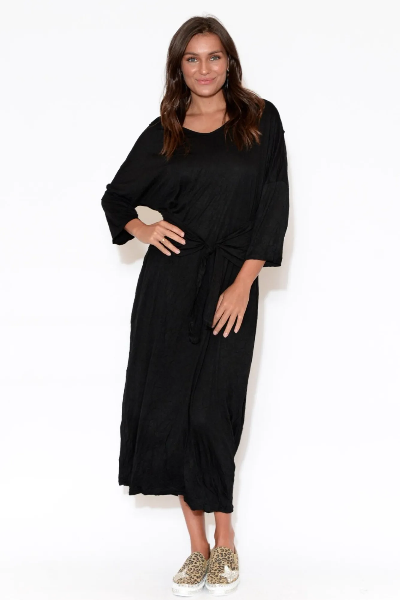 Cotton Dresses<Cotton Village Patricia Black Crinkle Cotton Tie Dress