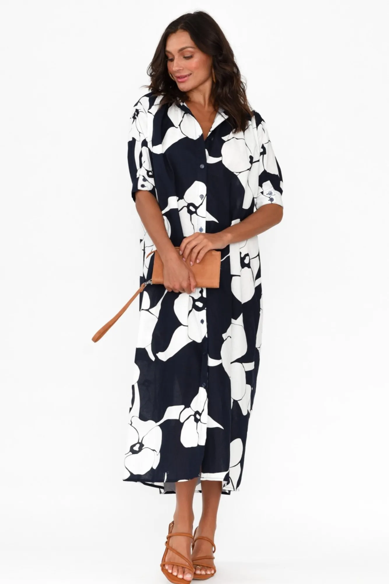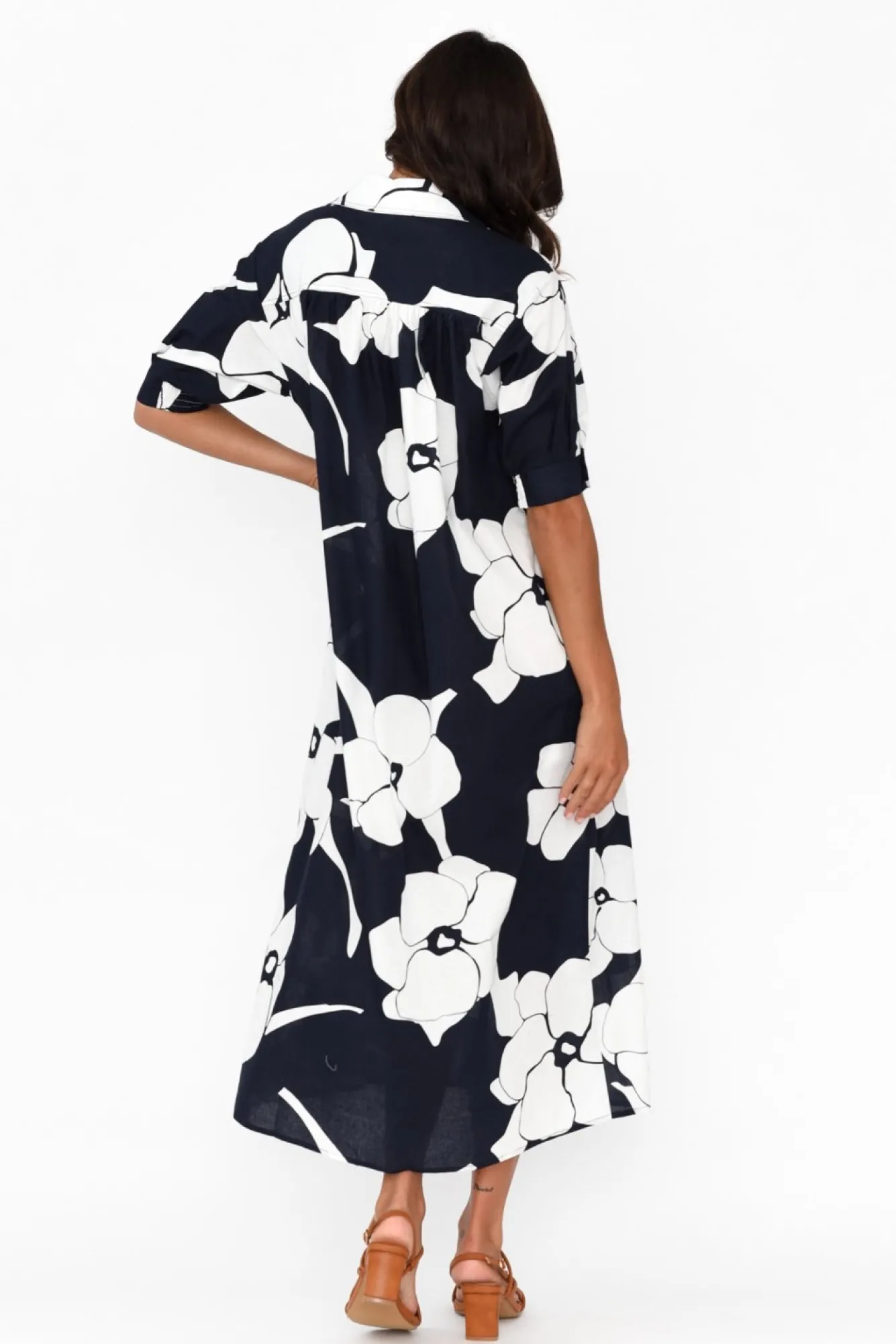 Fit: True To Size. Refer To Size & Fit Tab Below For Specific Size RecommendationNNfabric: 100% CottonNcrafted From Lightweight, Breathable And Non-Stretch Cotton With A Classic Smooth Woven Finish NNelegant Collared Neckline Leads To A Classic Button-Down Front NNhalf-Length Sleeves With An Elasticated Button Cuff To Create A Puff Look NNversatile Straight Shirt Dress SilhouetteNmatching Fabric Double D-Ring Belt Ntwo Hip Pockets Located In Side Seams NNstraight Hemline Falls To Midi Length NNNcare: Cool Gentle Hand Wash RecommendedNNcolour: Deep Navy With A Lush White Flower Print Overlay