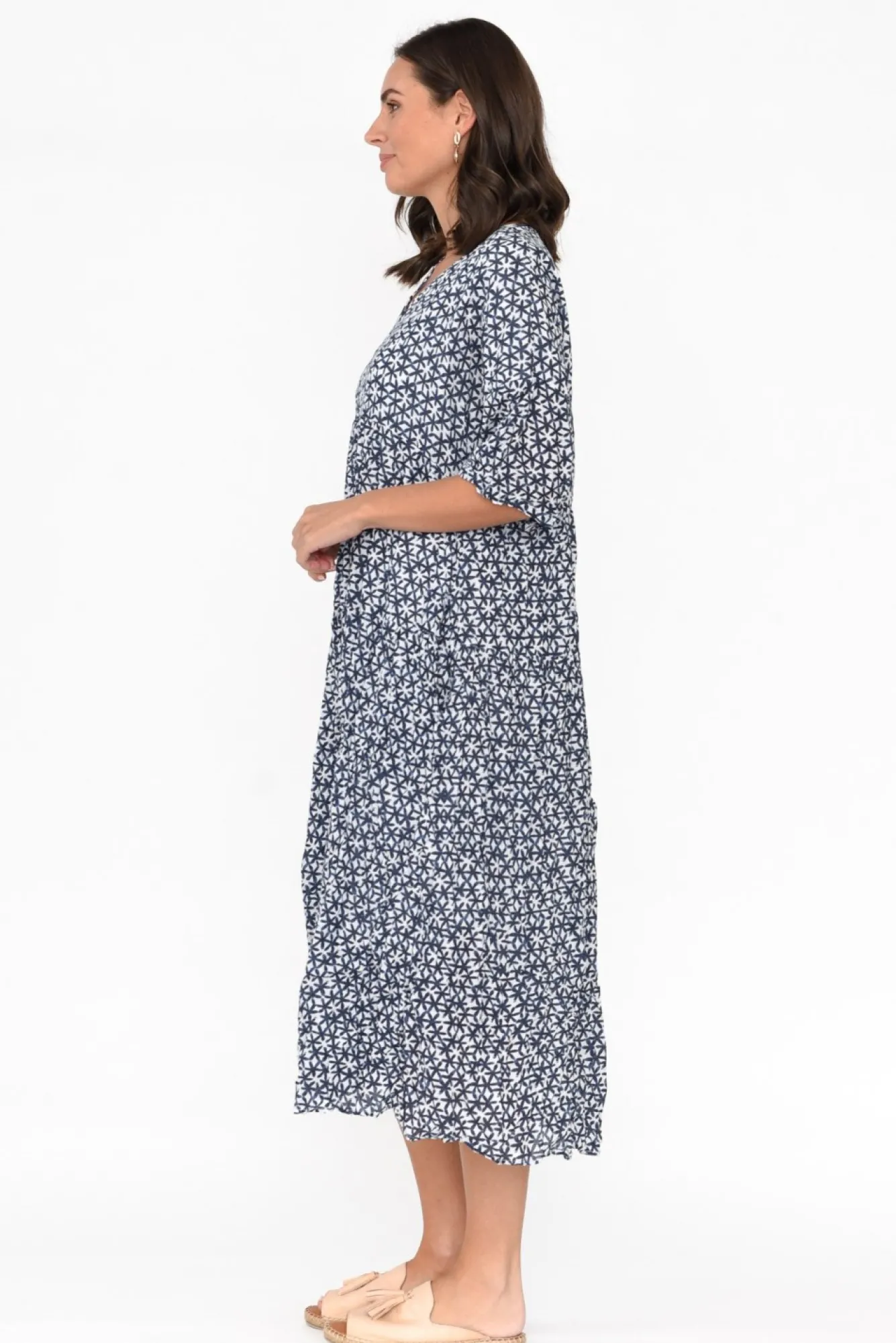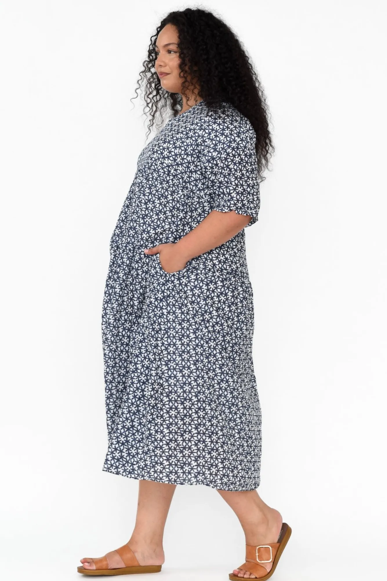 Fit: True To Size – Oversized Fit. Refer To Size & Fit Tab Below For Specific Size RecommendationNNfabric: 100% Cotton Nsoft And Breathable Crinkle Cotton Fabric, Perfect For Keeping You Cool During The Warmer Months NNnon-Stretch Lining From Shoulder To Mid-Thigh NNsharp V-Neckline Highlights The Collarbones NN3/4 Length Sleeves Fall Below The ElbowNNversatile Tiered A-Line Silhouette NNtwo Discreet Hip PocketsNNfalls To An Easy-To-Wear Midi LengthNNNcare: Cool Gentle Hand Wash RecommendedNNcolour: Delicate Navy Flower Print Over A White BaseNNNfabric Tip: Store It Rolled Up Either In The Wardrobe Or In Your Suitcase To Keep The Crinkle Alive!