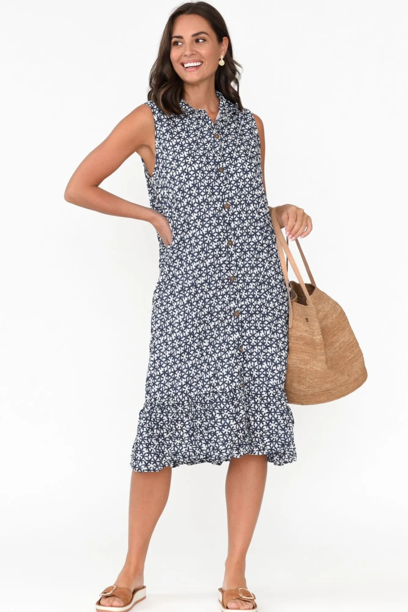 Fit: True To Size. Refer To Size & Fit Tab Below For Specific Size RecommendationNNfabric: 100% CottonNlovely Lightweight And Breathable Cotton Fabric With A Must-Have Crinkle TextureNcollared Neckline With Complementary Wooden Buttons From Neckline To HemNsleeveless Design And Full Shoulder Coverage NNsimple Shift Silhouette For Ultimate ComfortNNsewn-In Cotton Lining – No Need For An Additional SlipNfrilled Hem Falls Past The Knees NNNcare: Cool Gentle Hand Wash RecommendedNNcolour: White Base With A Navy Floral Print