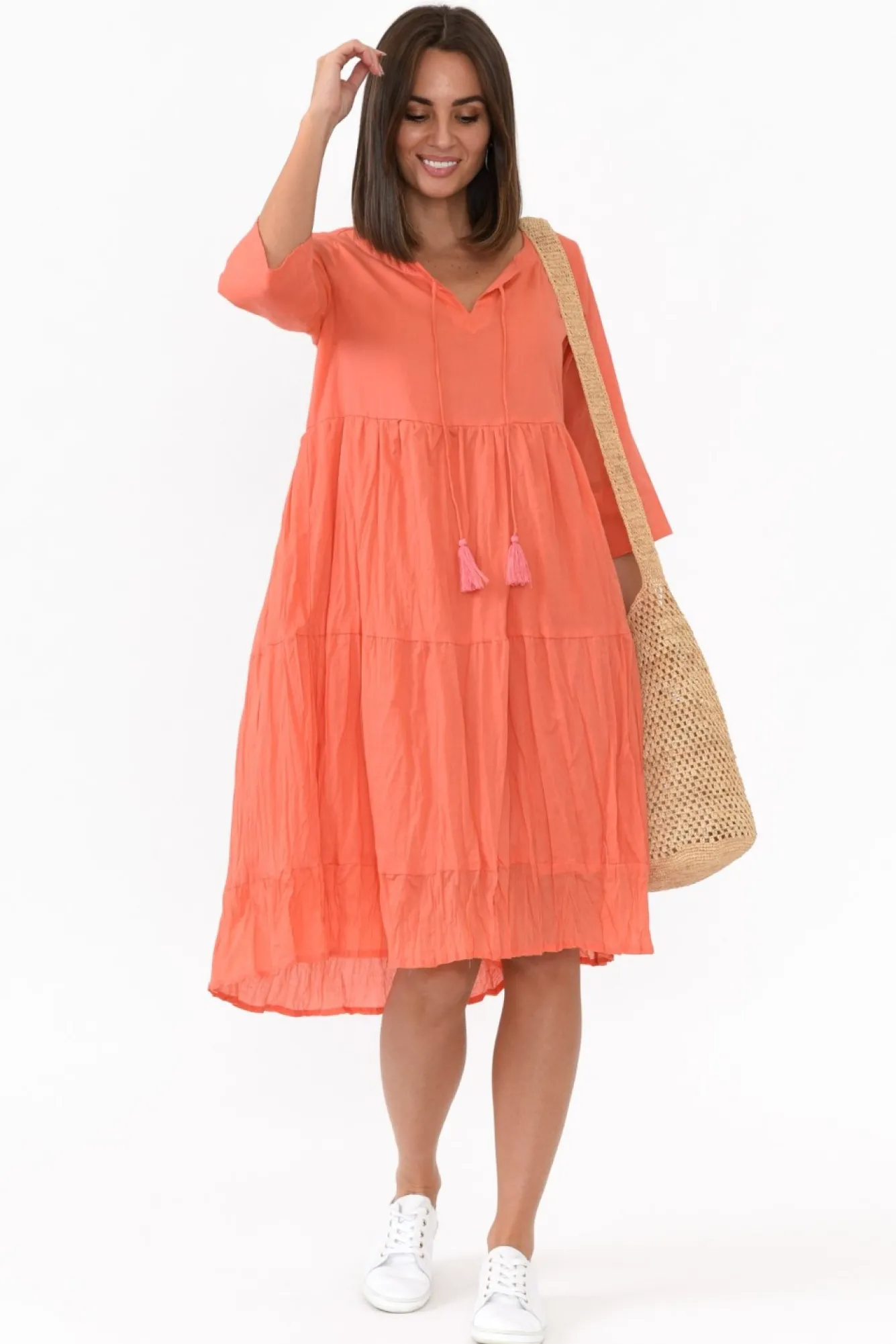 Cotton Dresses<One Summer Milana Peach Crinkle Cotton Dress