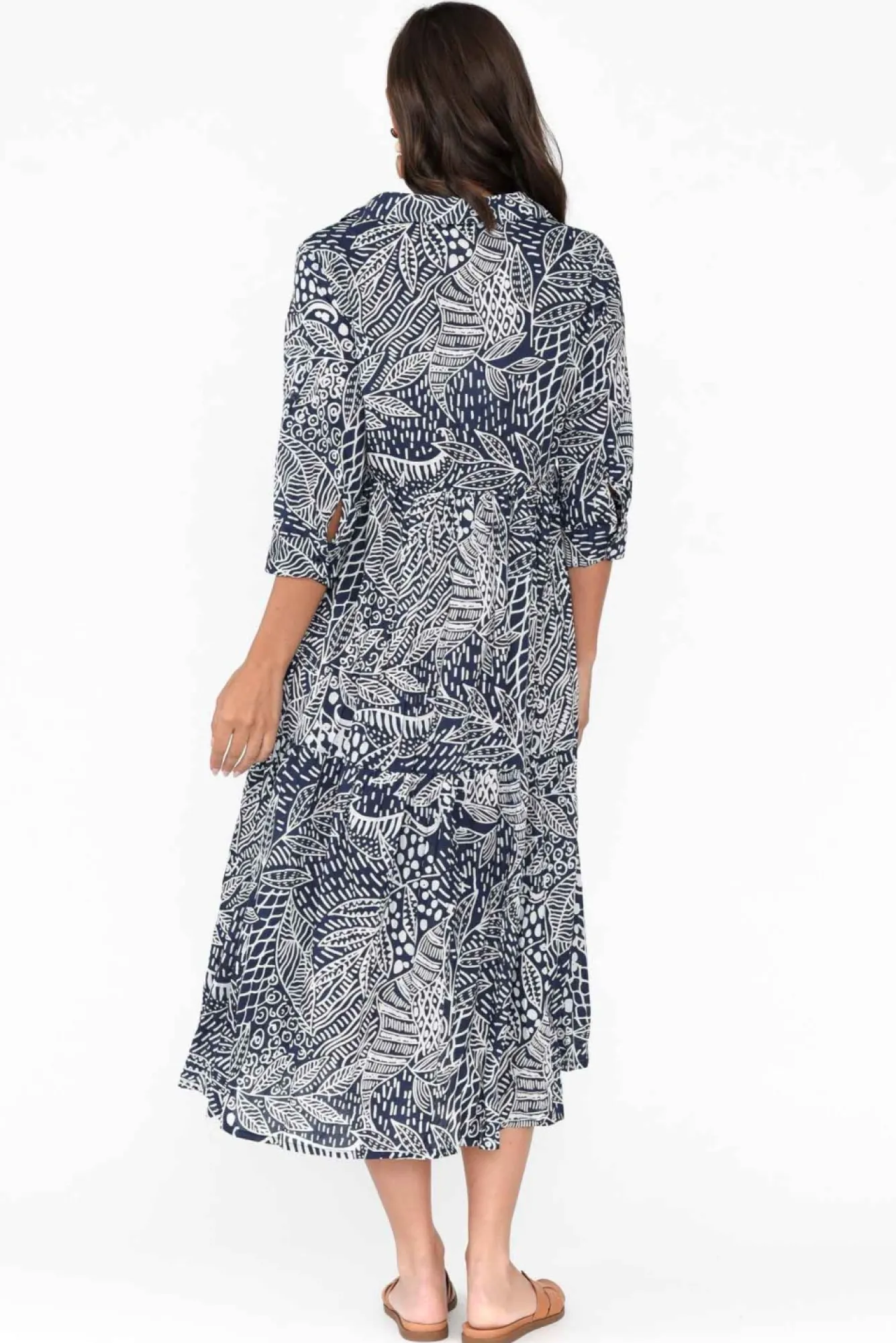 Cotton Dresses<Orientique Leros Navy Jungle Organic Cotton Shirt Dress