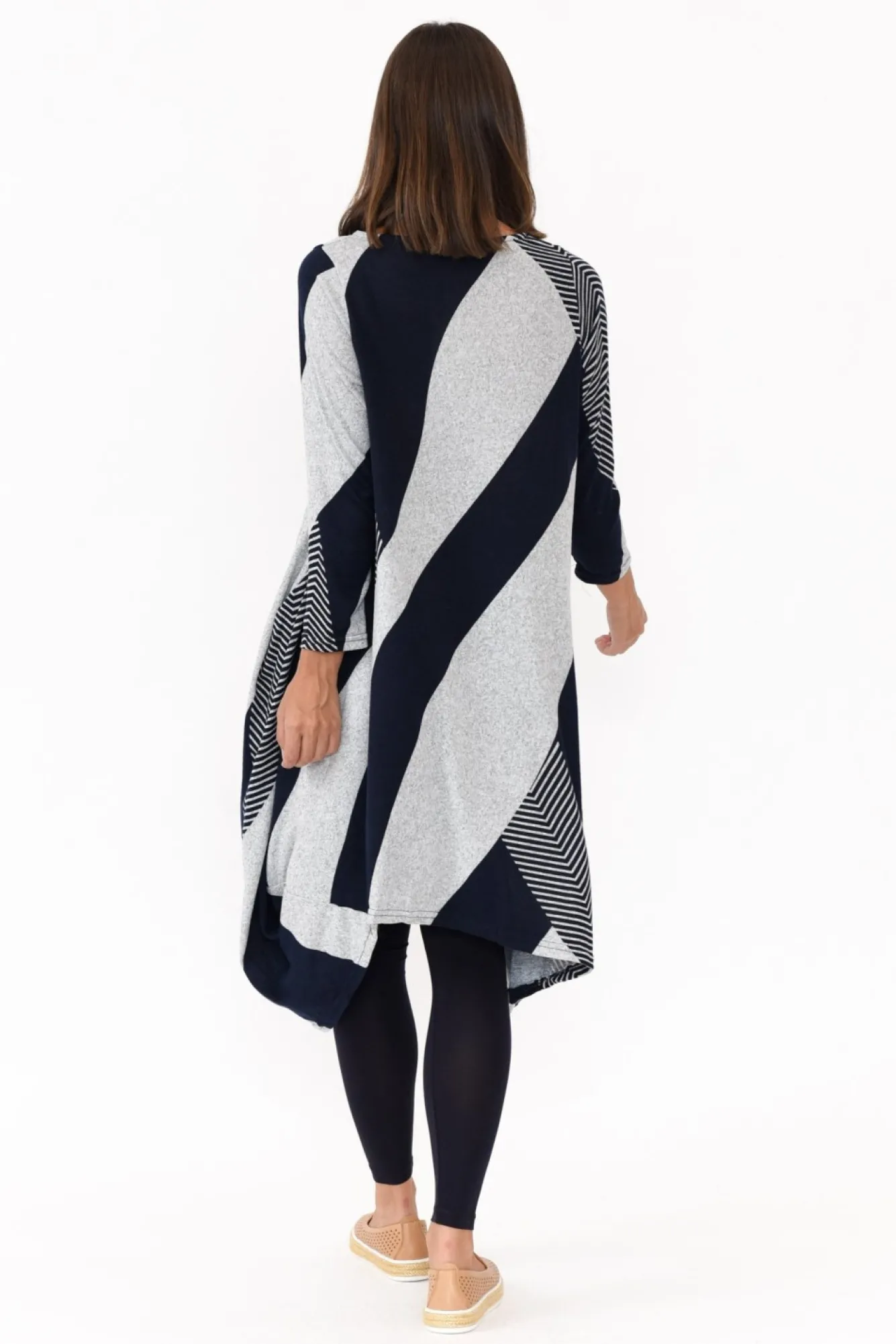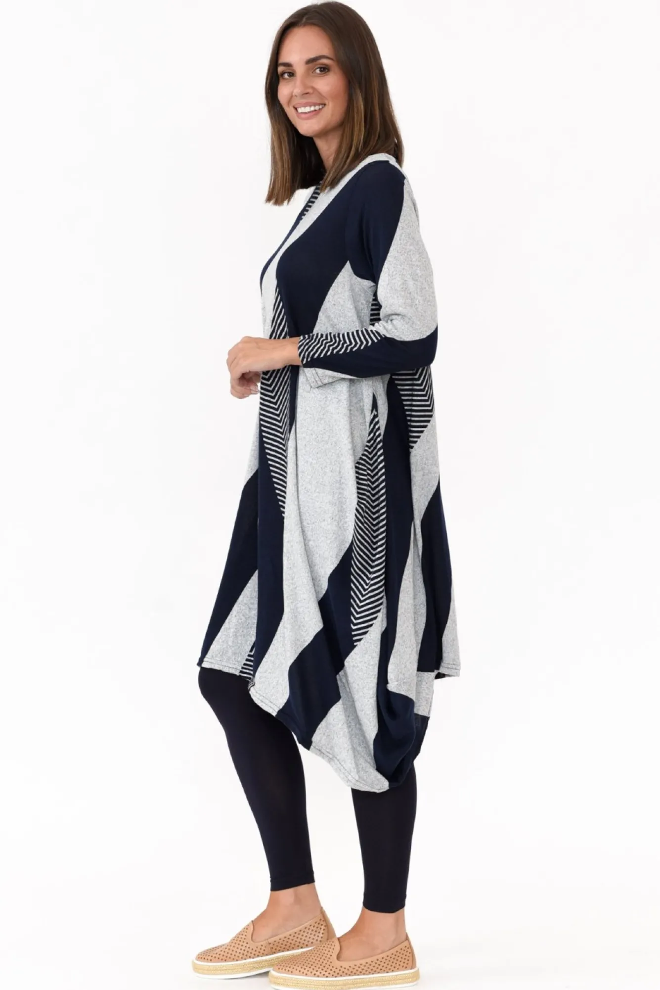 Fit:True To Size. Refer To Size & Fit Tab Below For Specific Size RecommendationNNfabric:65% Cotton, 35% PolyesterNmidweight, Soft And Cozy, Knit Fabric With Slight StretchNNrounded NecklineNNslimming Full-Length SleevesNNside Tucks And Pleats Create A Unique And Flattering Draped Balloon SilhouetteNNintentional Relaxed And Oversized FitNeye-Catching Asymmetric HemlineNknee-LengthNNNcare:Cool Gentle Hand Wash RecommendedNNcolour:Grey With Contrasting Navy Thick Diagonal StripesNN Note:Please See Photos Rather Than Video For Most Accurate Colour.