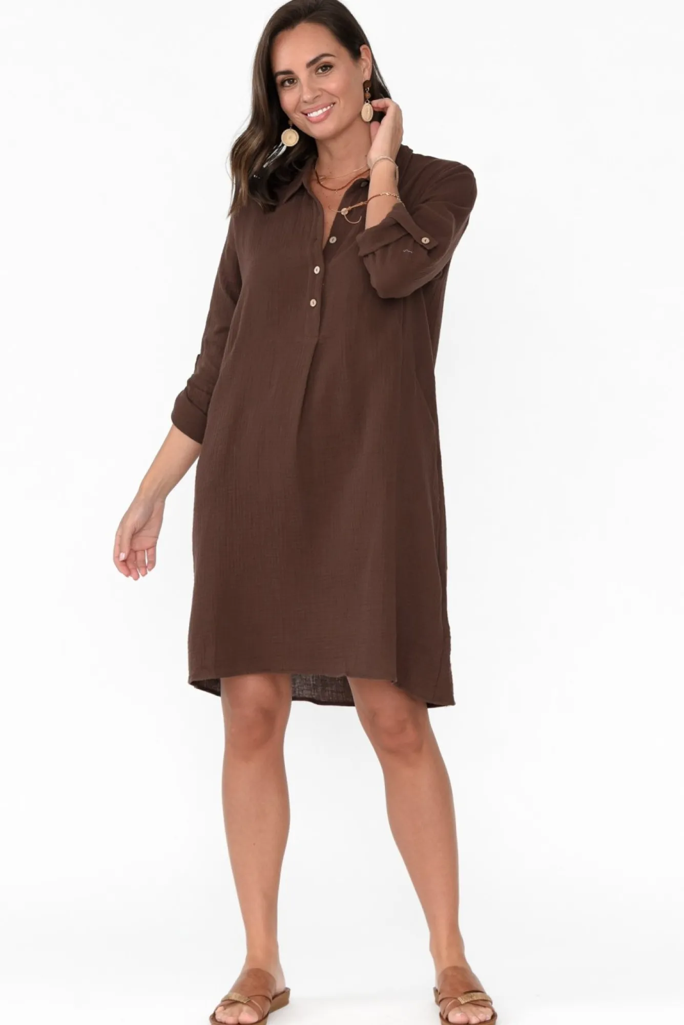 Be the first to review “Cotton Dresses<Threadz Byron Chocolate Cotton Shirt Dress” Cancel reply