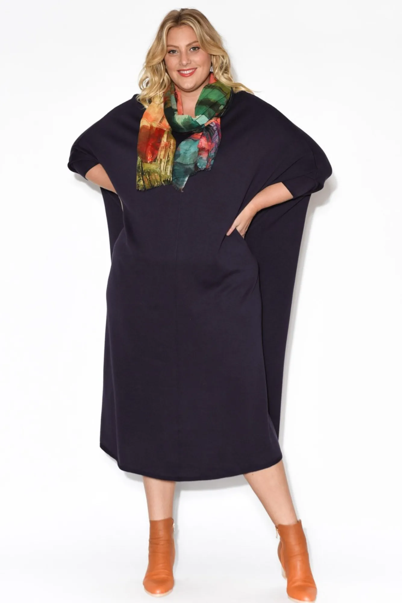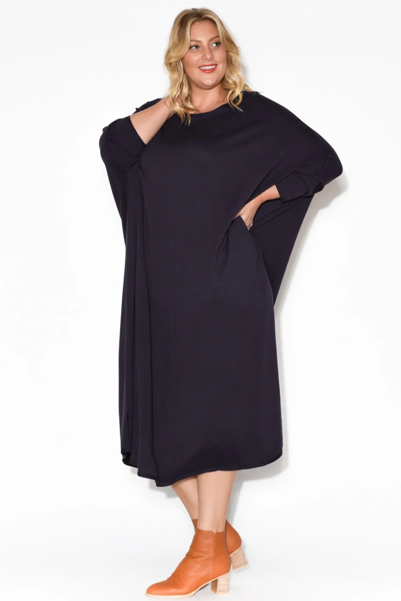 Fit: True To Size, Oversized Fit. Refer To Size & Fit Tab Below For Specific Size Recommendation NNfabric: 60% Cotton, 20% Modal, 20% ViscoseNultra-Comfortable And Cozy, Oversized Midweight Knit DressNboxy Draping Silhouette Flows Down The BodyNrounded NecklineNNfull-Length Batwing Sleeves Taper Towards The ForearmNNhem Falls To A Midi LengthNNcare: Cool Gentle Hand Wash RecommendedNNcolour: I»¿True Navy Shade