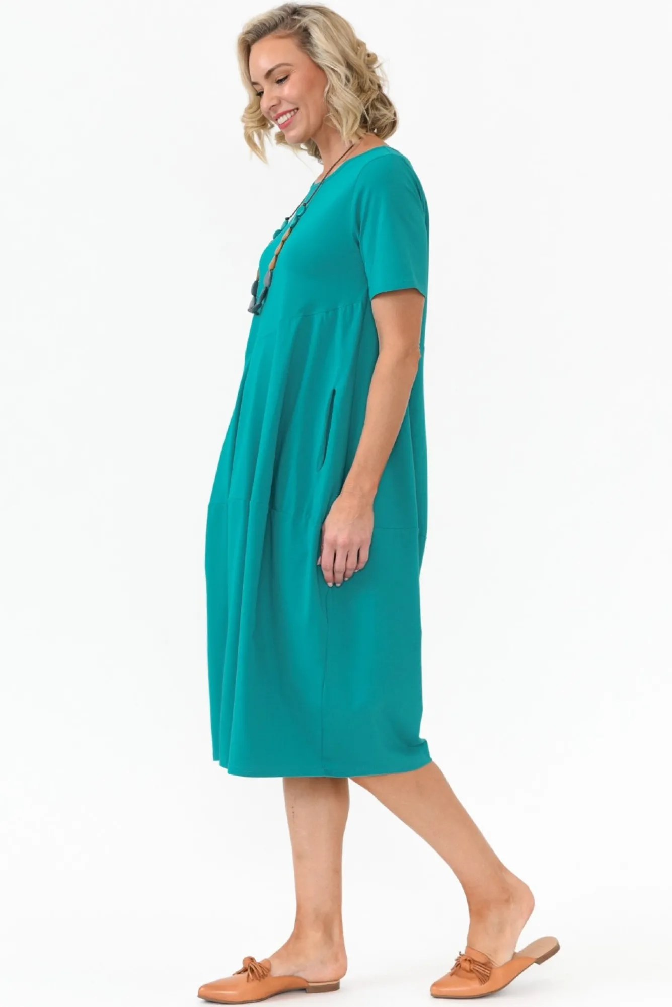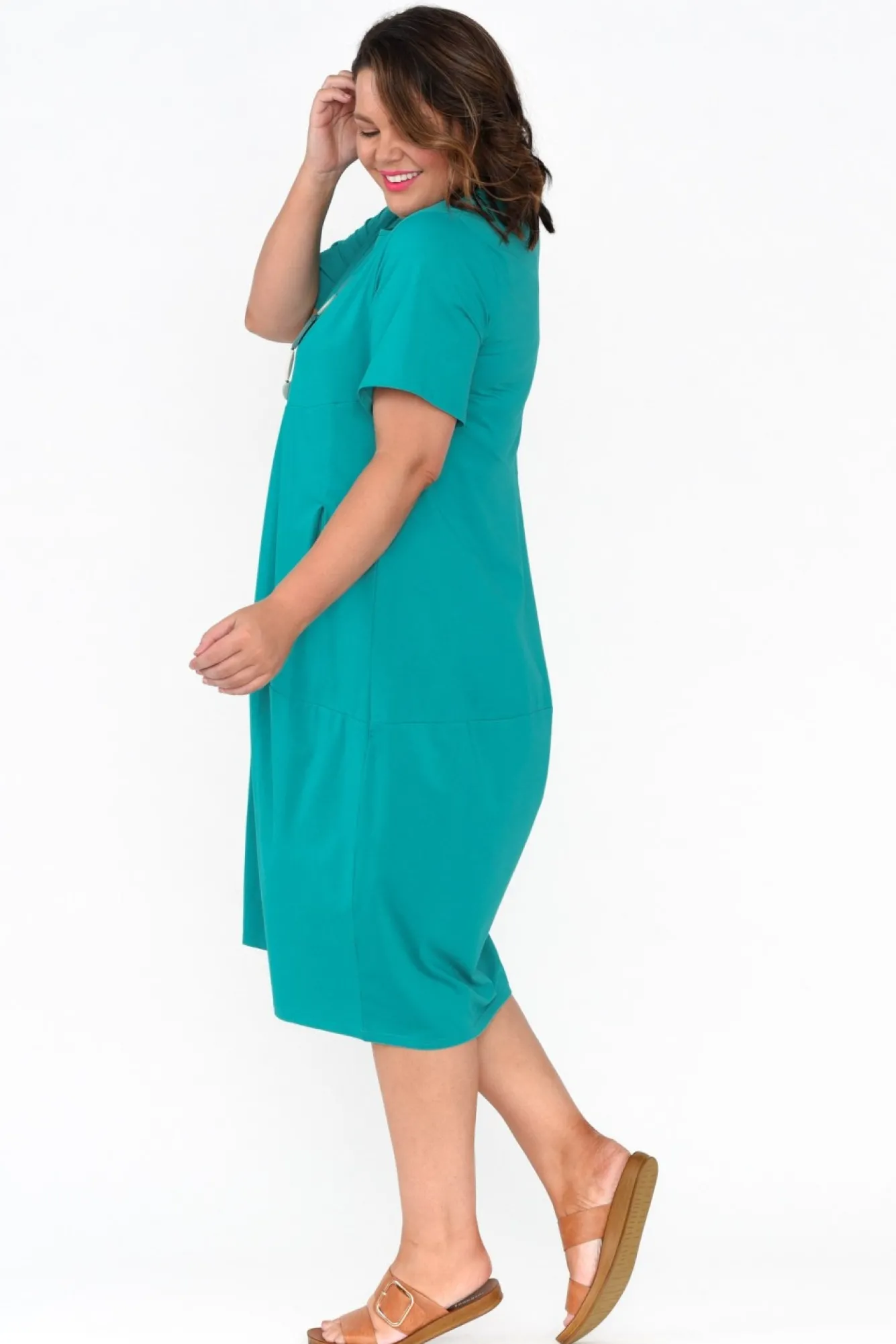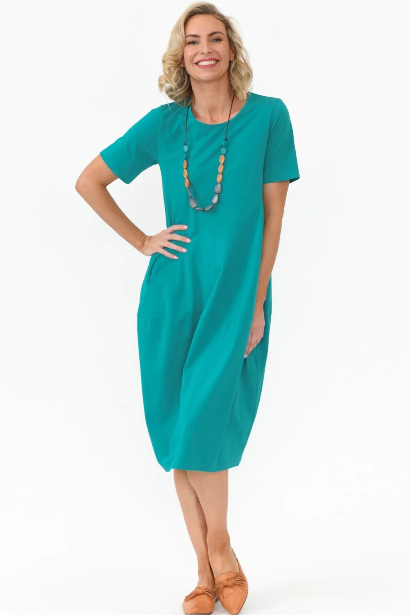 Fit: True To Size. Refer To Size & Fit Tab Below For Specific Size Recommendation NNfabric: 95% Cotton, 5% Elastane Nstretchy, Lightweight And Breathable Cotton Blend Fabric With A Smooth Hand FeelNNround Neckline And Straight Short Sleeves For A Refined Look NNversatile Tulip Silhouette With Elevated Diagonal Seam Detailing NNpractical Design Enhanced By Two Front Pockets NNhemline Falls To An Easy-To-Wear Below Knee Length NNNcare: Cool Gentle Machine Wash RecommendedNNcolour: Eye-Catching Aqua Shade