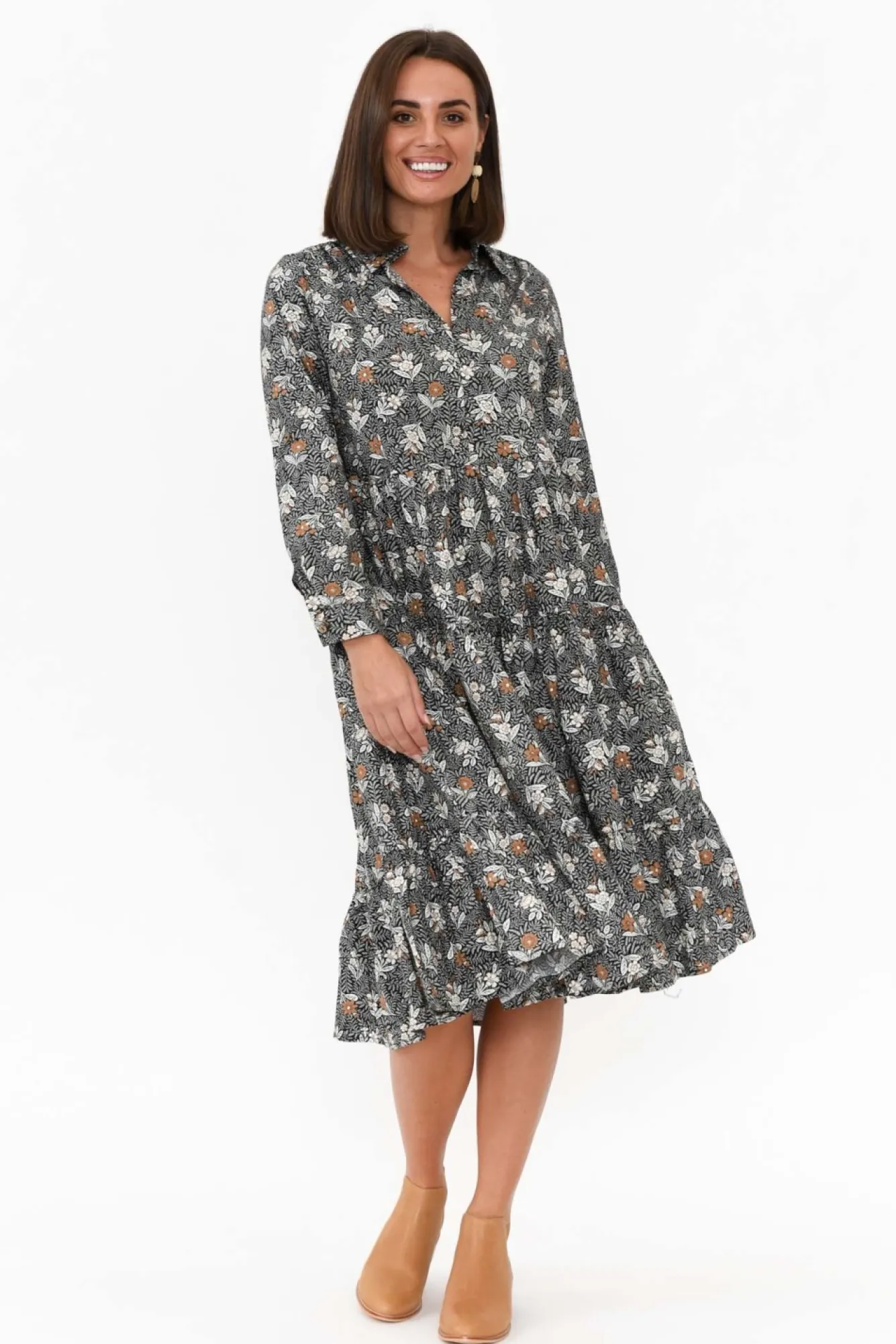 Cotton Dresses<Willow Tree Romeo Black Blossom Cotton Shirt Dress