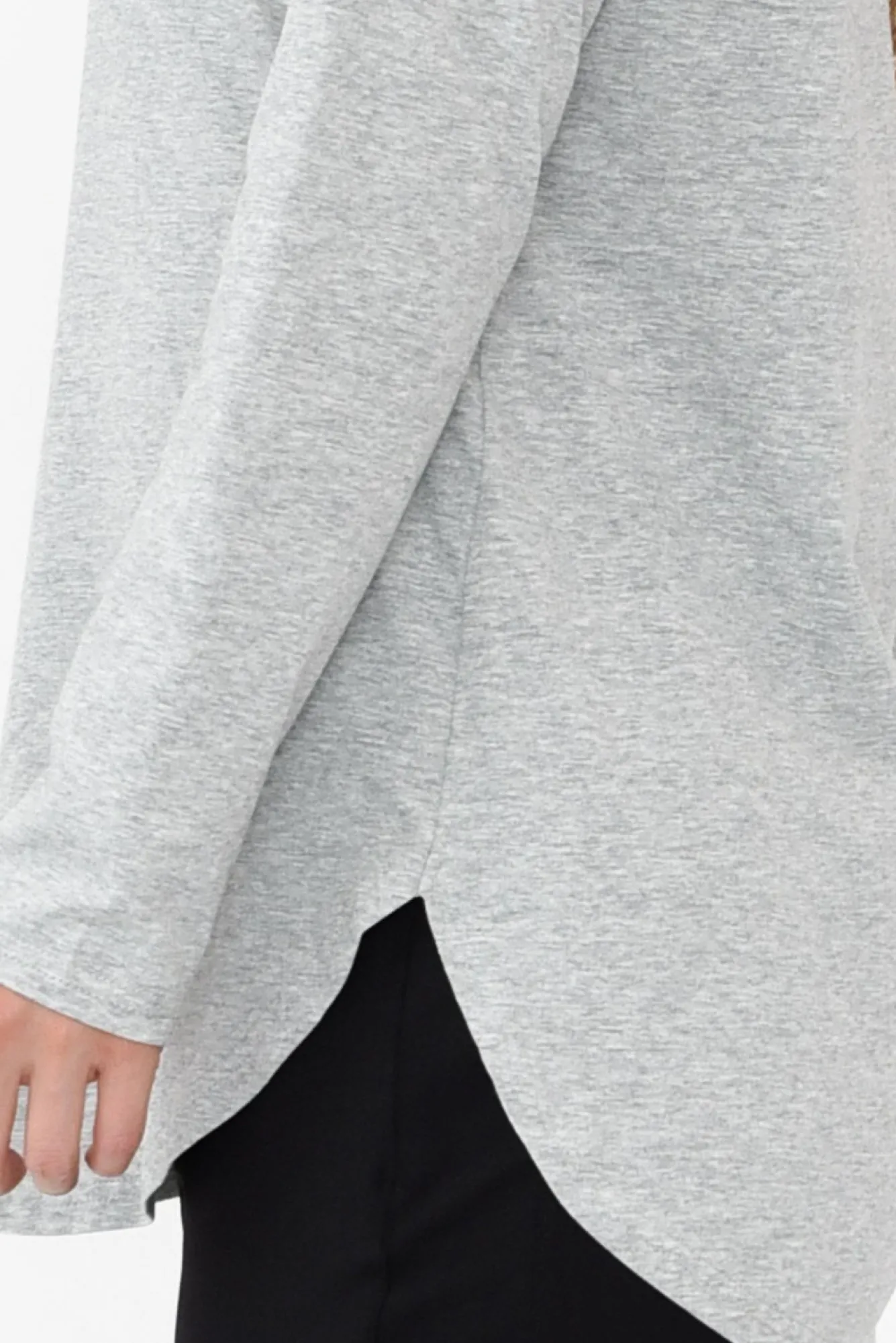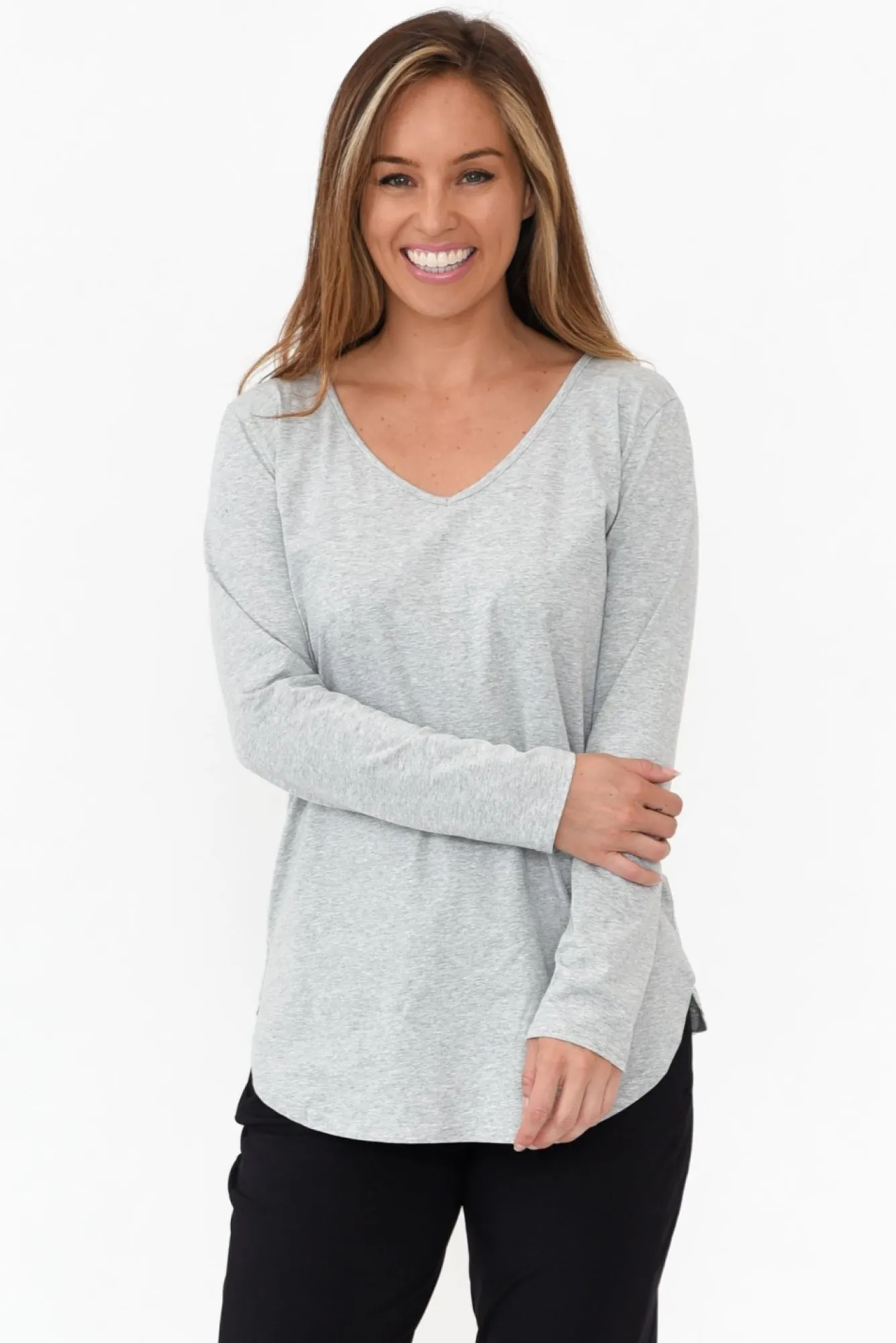 Fit: True To Size. Choose The Size You Would Usually BuyNNfabric: 95% Cotton, 5% SpandexNmade From Lightweight, Breathable And Stretchy Cotton Fabric NNsharp V-Neckline Complements The Full-Length Sleeves Nstraight Silhouette Enhanced By Curved Hi-Lo Hemline NNfalls To Hip-Skimming Length NNcare: Cool Gentle Hand Wash RecommendedNNcolour: Timeless Grey Marle