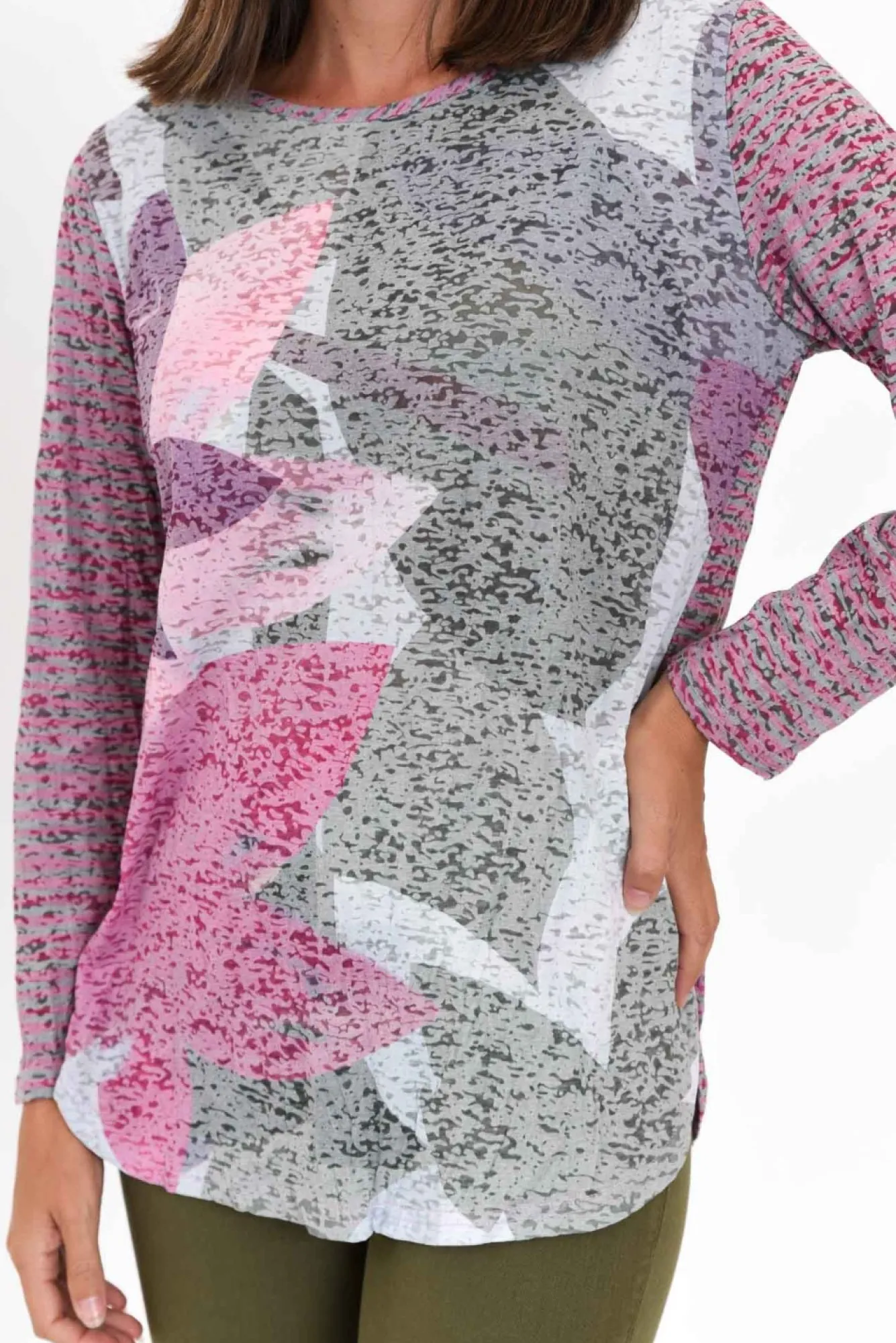 Fit: True To Size. Refer To Size & Fit Tab Below For Specific Size RecommendationNNfabric: 60% Cotton 40% PolyesterNlightweight Cotton Blend Fabric With A Comfortable StretchNNfabric Features A Unique Burn-Out Effect To Enhance Lightweight Look And FeelNsimple Rounded Neckline Complements The Full-Length Sleeves Ntimeless Straight-Cut Silhouette NNcurved Hemline Falls Just Below Hip Length NNNcare: Cool Gentle Hand Wash RecommendedNNcolour: Purple, Pink And Sage Oversized Flower Print NNstyle Tip: Fabric Is Slightly Sheer. For Additional Coverage, We Recommend Pairing With Your Favourite Camisole.