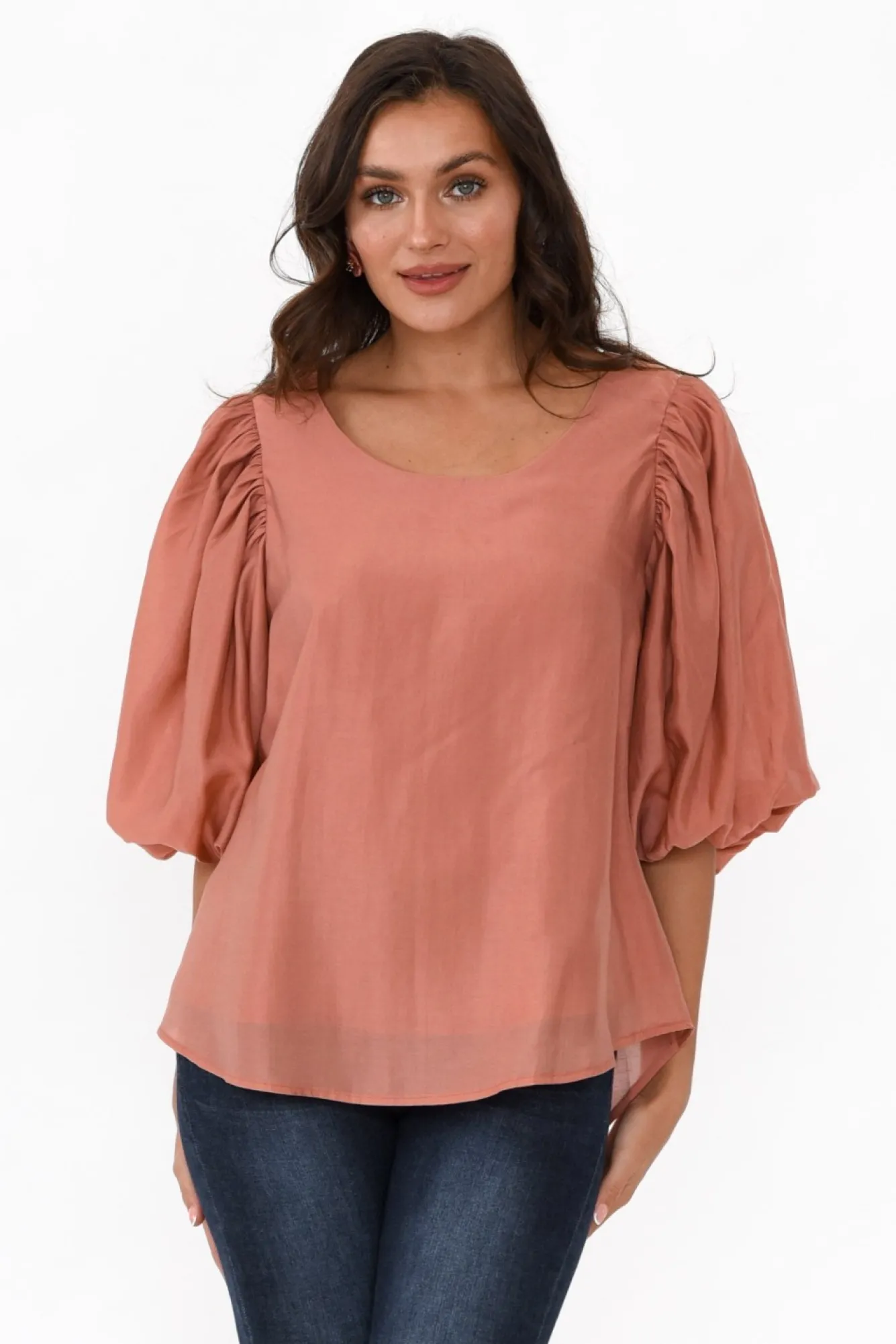 Cotton Tops<Cali and Co Gallagher Rust Cotton Puff Sleeve Top