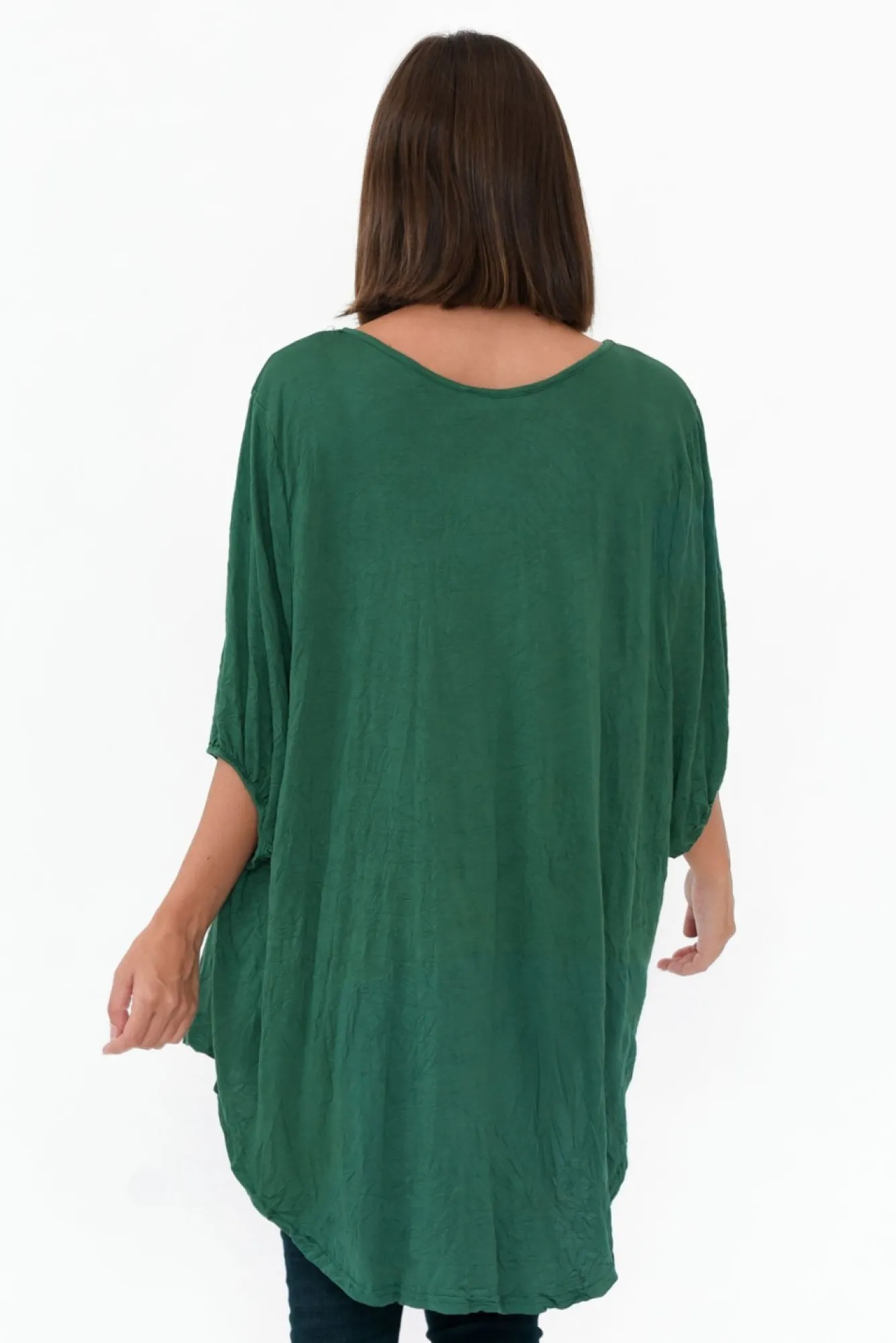 Fit: True. Refer To Size & Fit Tab Below For Specific Size RecommendationNNfabric: 100% CottonNlightweight, Breathable And Relaxed Fabric With Moderate Stretch NNsoft V Neckline Highlights CollarbonesNshort Sleeves With Elastic Cuffs For A Slight Balloon LookNdraped Relax Style With A Dramtic Hi-Lo HemNhip Skimming LengthNNcare: Cool Gentle Hand Wash RecommendedNNcolour: Brilliant Emerald Green ShadeNavailable As Part Of Our Plus Size Clothing Range