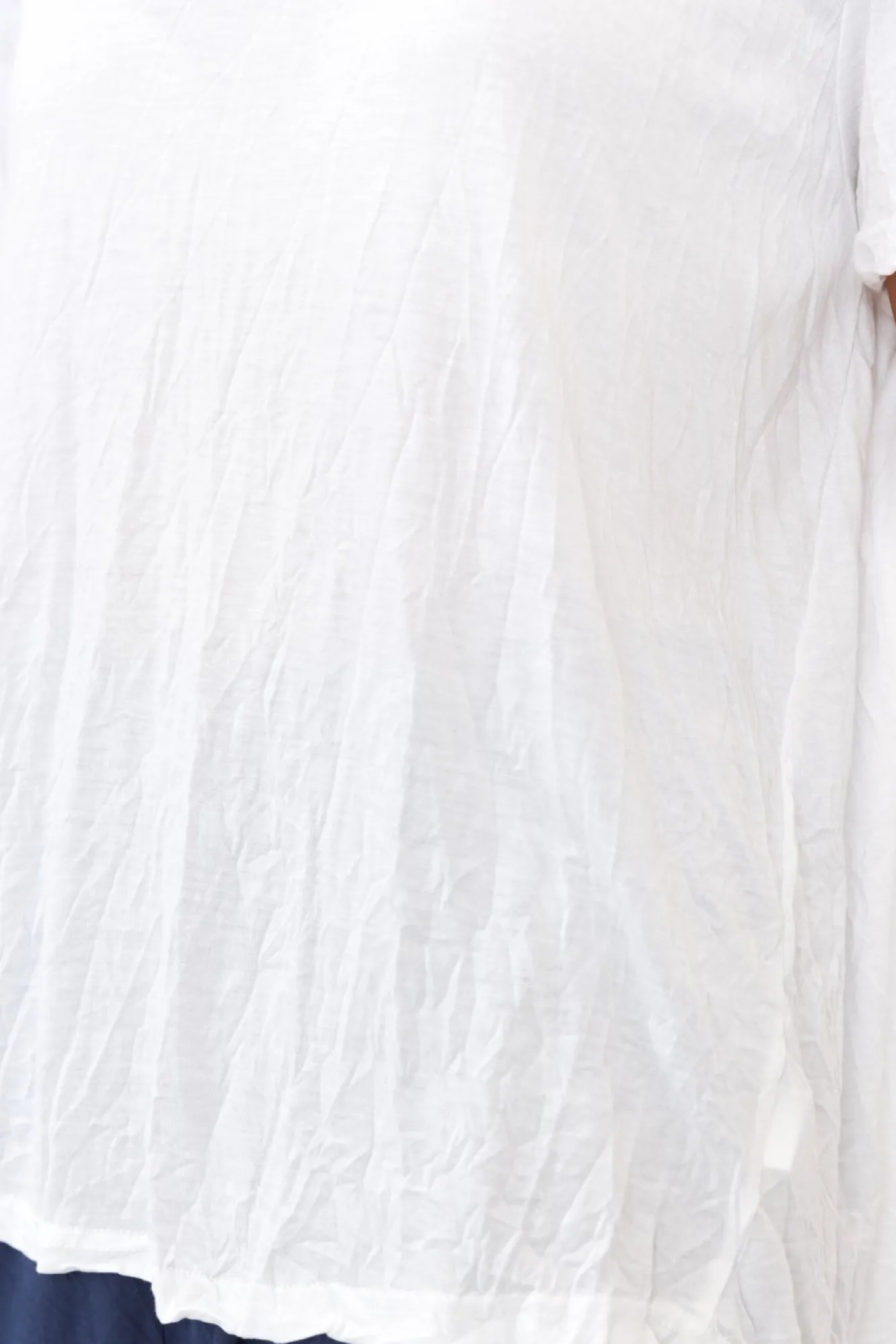 Fit: True To Size. Refer To Size & Fit Tab Below For Specific Size RecommendationNNfabric: 100% CottonNultra-Lightweight, Breathable And Stretchy Crinkle Cotton Fabric NNslightly Sheer Fabric, We Recommend Wearing Nude UndergarmentsNsoft And Simple V-Neckline NNclassic Short Sleeves NNrelaxed Straight Silhouette NNhi-Lo Hemline Falls To Hip-Skimming Length NNNcare: Cool Gentle Hand Wash RecommendedNNcolour: Crisp White