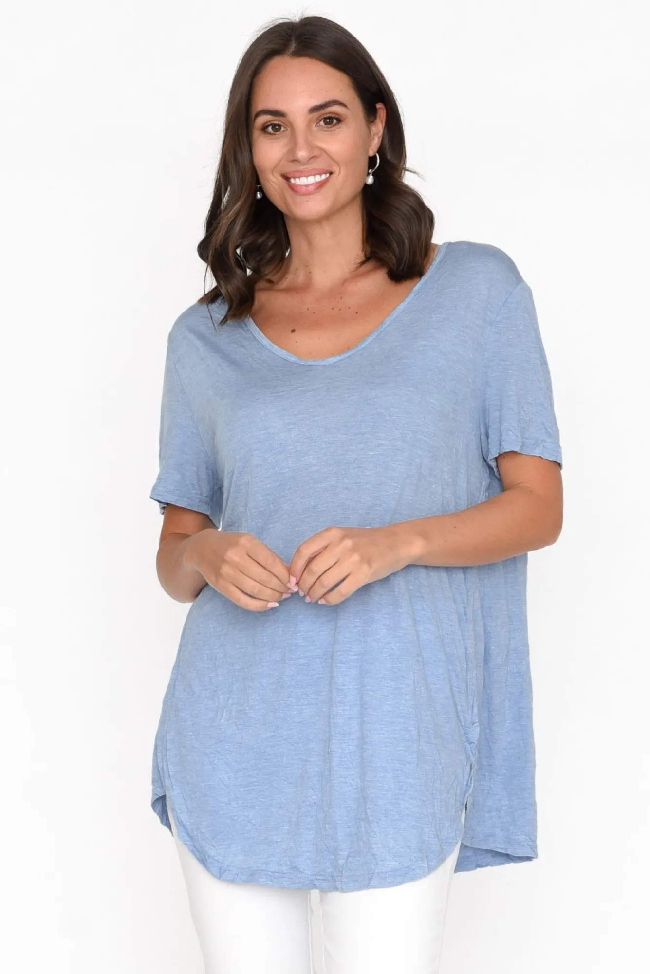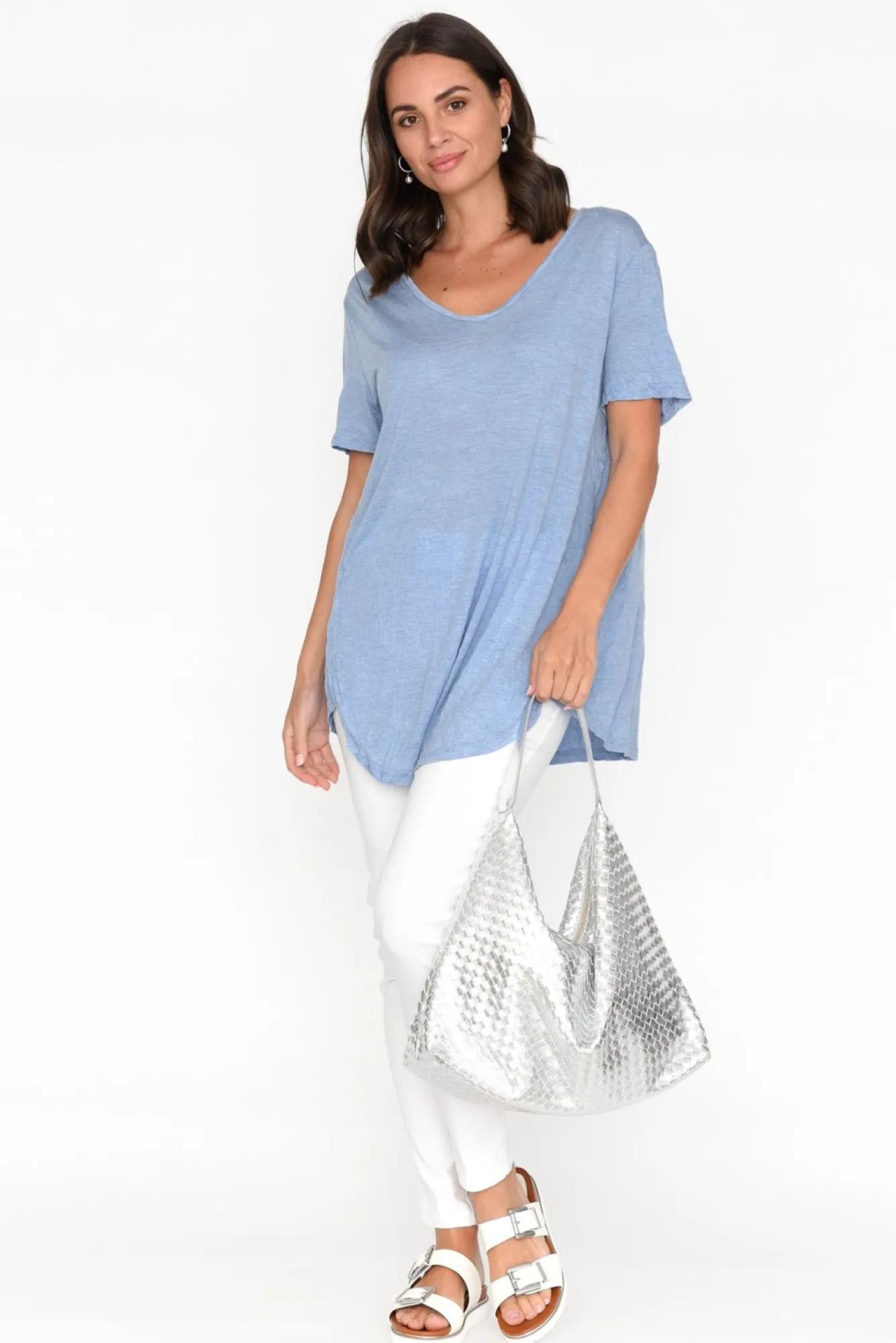 Cotton Tops<Cotton Village Moira Blue Crinkle Cotton Tee