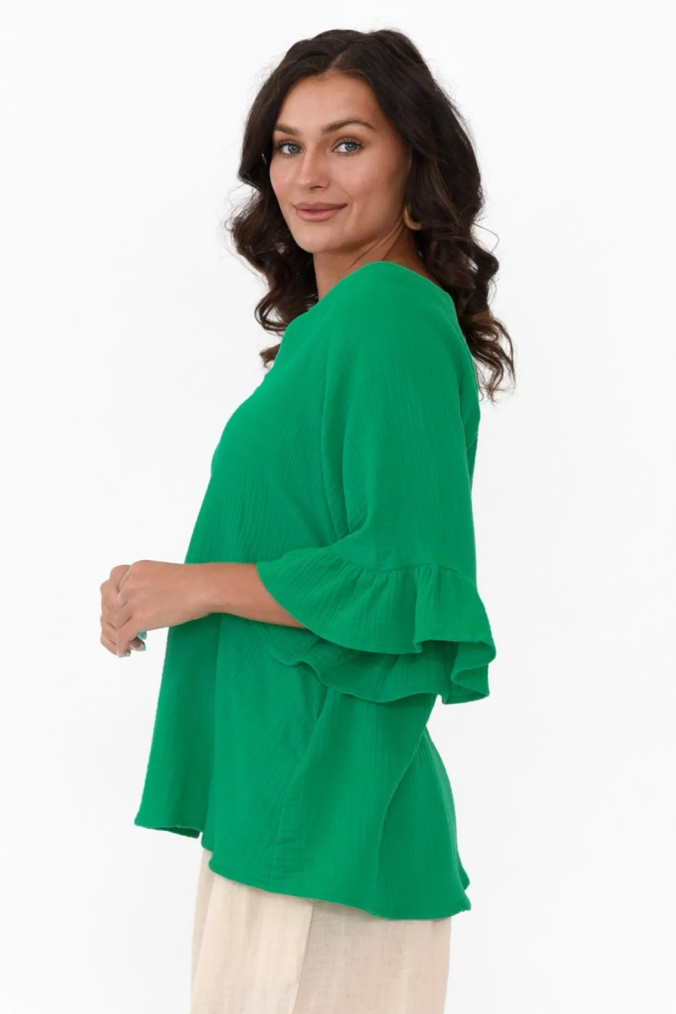 Be the first to review “Cotton Tops<Hourglass Corey Green Crinkle Cotton Frill Top” Cancel reply