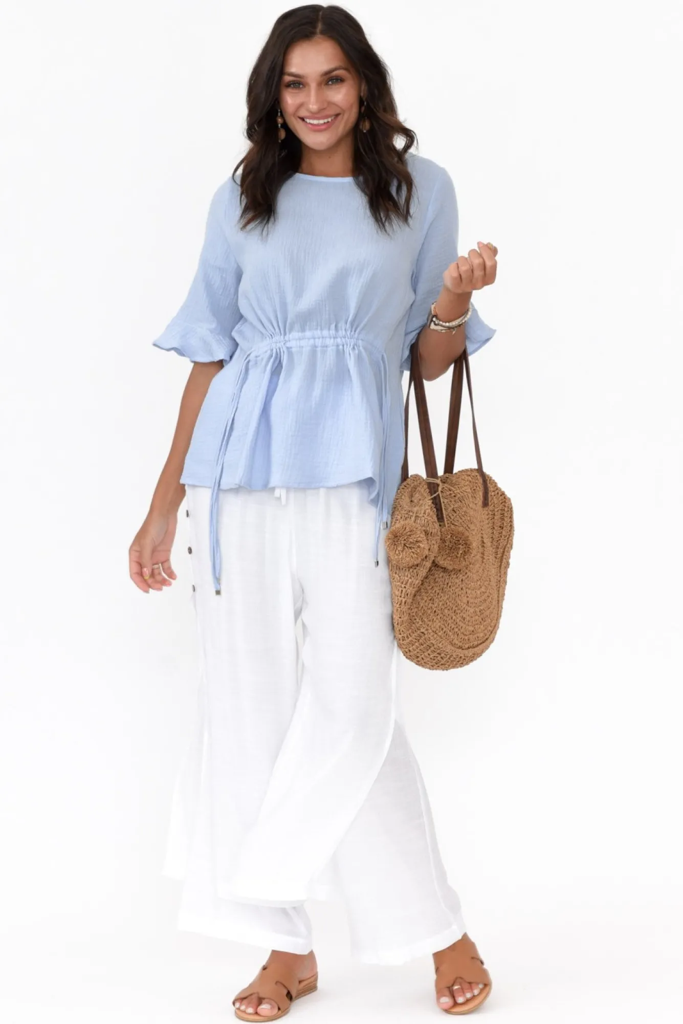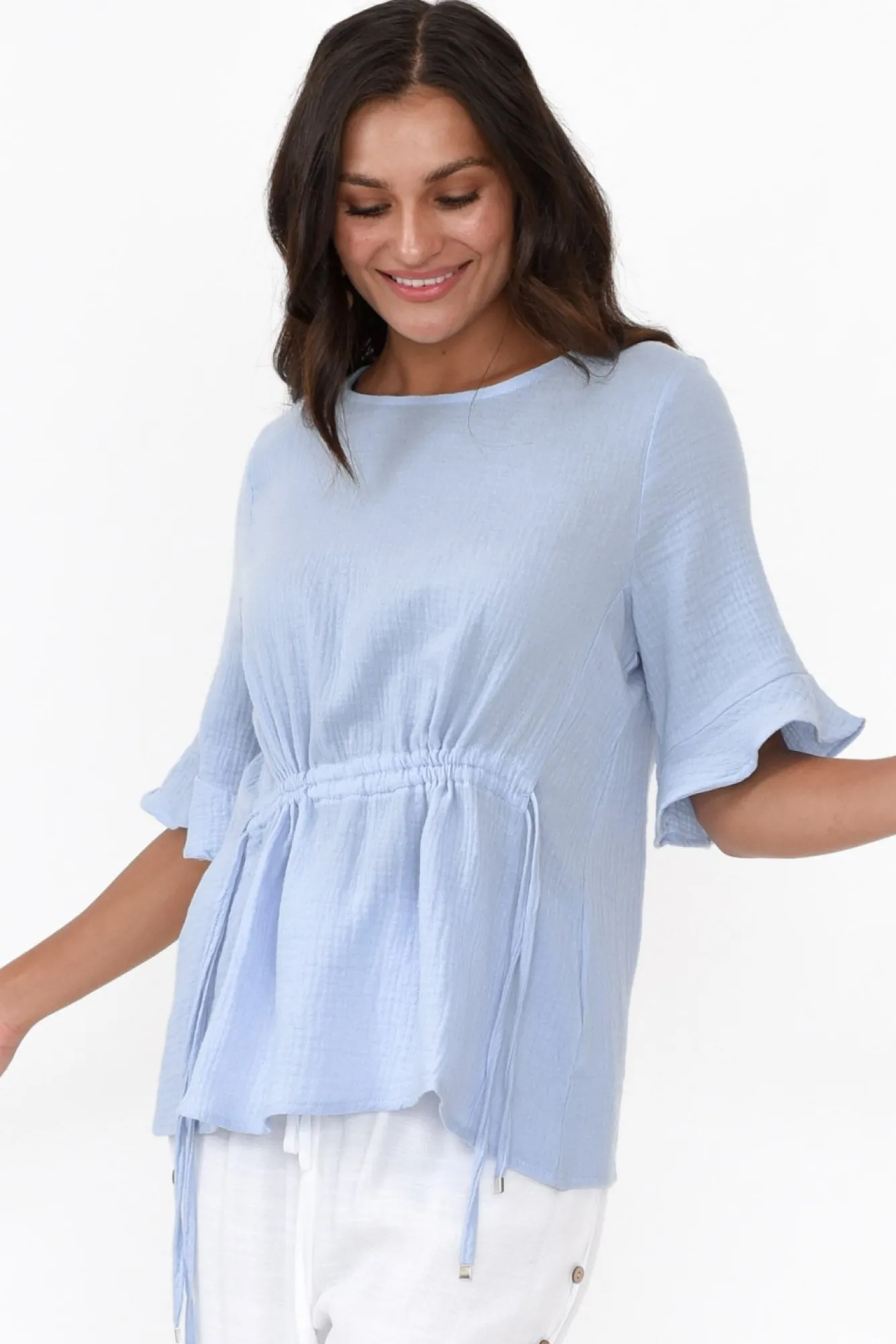 Fit: True To Size. Refer To Size & Fit Tab Below For Specific Size RecommendationNNfabric: 100% CottonNcomfortable And Soft Lightweight, Non-Stretch Cotton With Wonderful Breathability And A Lovely Crinkle TextureNelegant Round Neckline Falls At The CollarbonesNNhalf-Length Sleeves With A Fun Frill CuffNtimeless A-Line SilhouetteNfeaturing Adjustable Waist Tie Detail Nstraight Hemline Falls To Hip-Skimming LengthNNNcare: Cool Gentle Hand Wash RecommendedNNcolour: Soft Powder Blue Shade