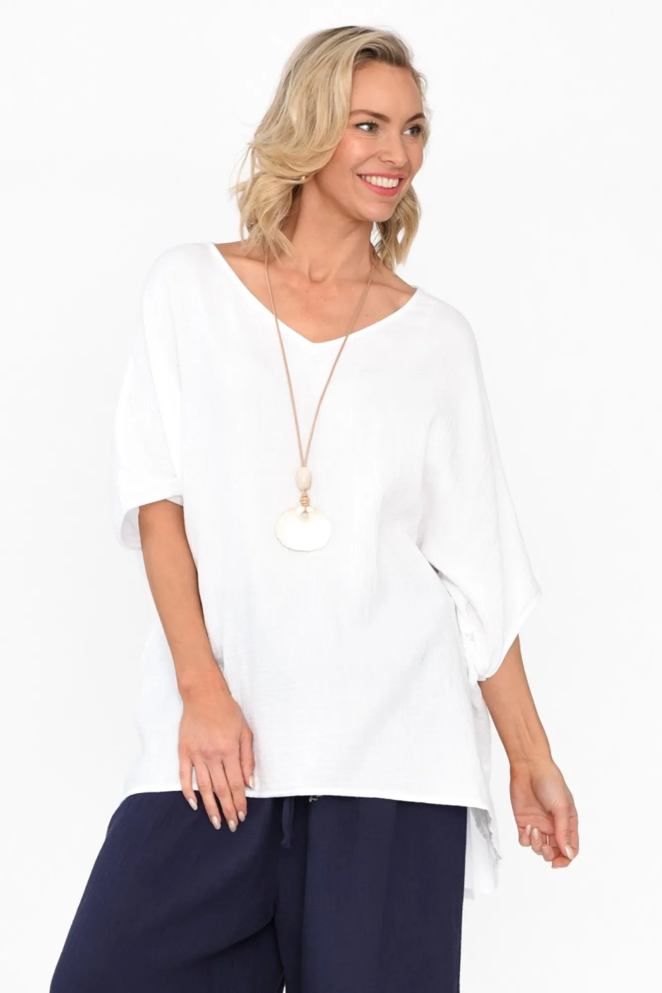 Fit: True To Size. Refer To Size & Fit Tab Below For Specific Size RecommendationNNfabric: 100% CottonNlightweight And Breathable Cotton Featuring A Cheesecloth-Textured Crinkle FinishNsharp V-Neckline Accentuates CollarbonesNbatwing Sleeves Fall To The ElbowNNdraped Silhouette Tapers Towards The HemNdramatic Hi-Lo Hemline Falls Below The Hips Providing Ample CoverageNNcare: Cool Gentle Machine Wash RecommendedNNNcolour: Crisp White Shade