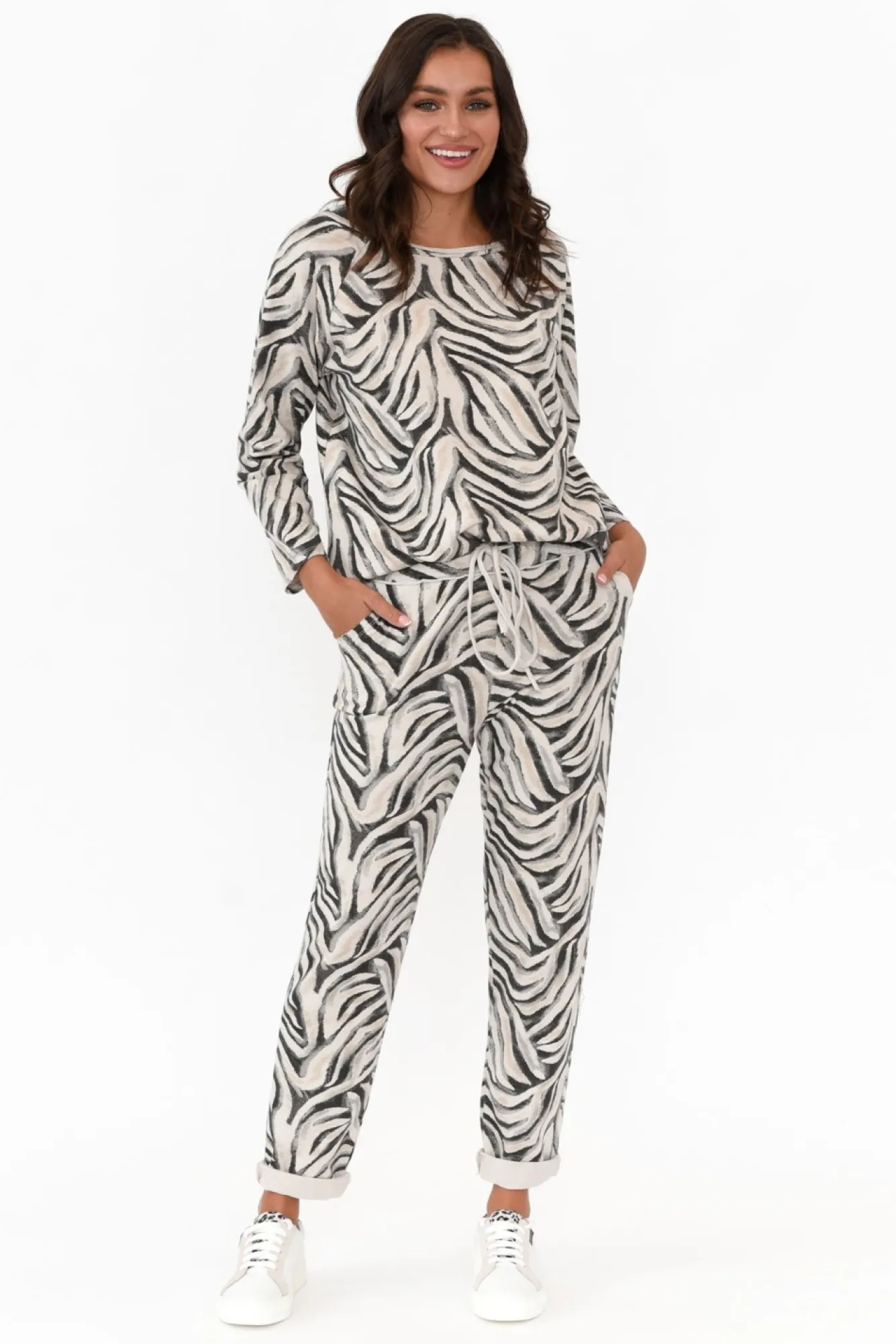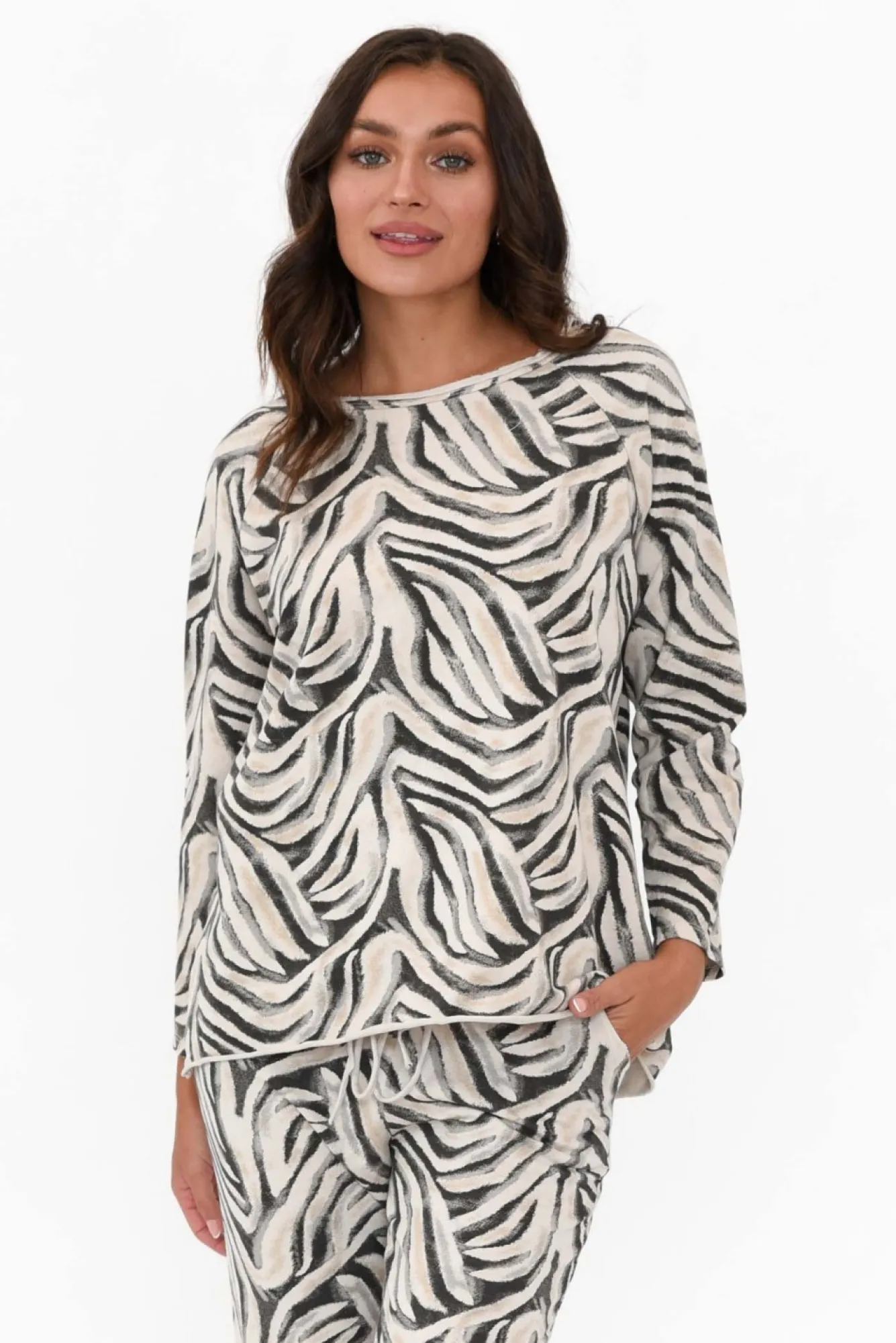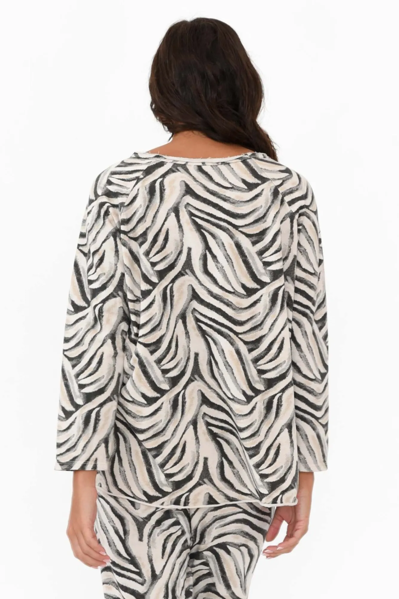 Fit: True To Size. Refer To Size & Fit Tab Below For Specific Size RecommendationNNfabric: 95% Cotton, 5% Elastane Ncomfortable Lightweight And Breathable Jersey Fabric NNwide Round Neckline With Elevated Raw Edge Detailing Nsimple Straight Full-Length Sleeves NNcomfortable Relaxed Straight SilhouetteNNraw Edge Hi-Lo Hemline Falls To Hip LengthNNNcare: Cool Gentle Hand Wash RecommendedNNcolour: Taupe Base With Abstract Black Zebra Print