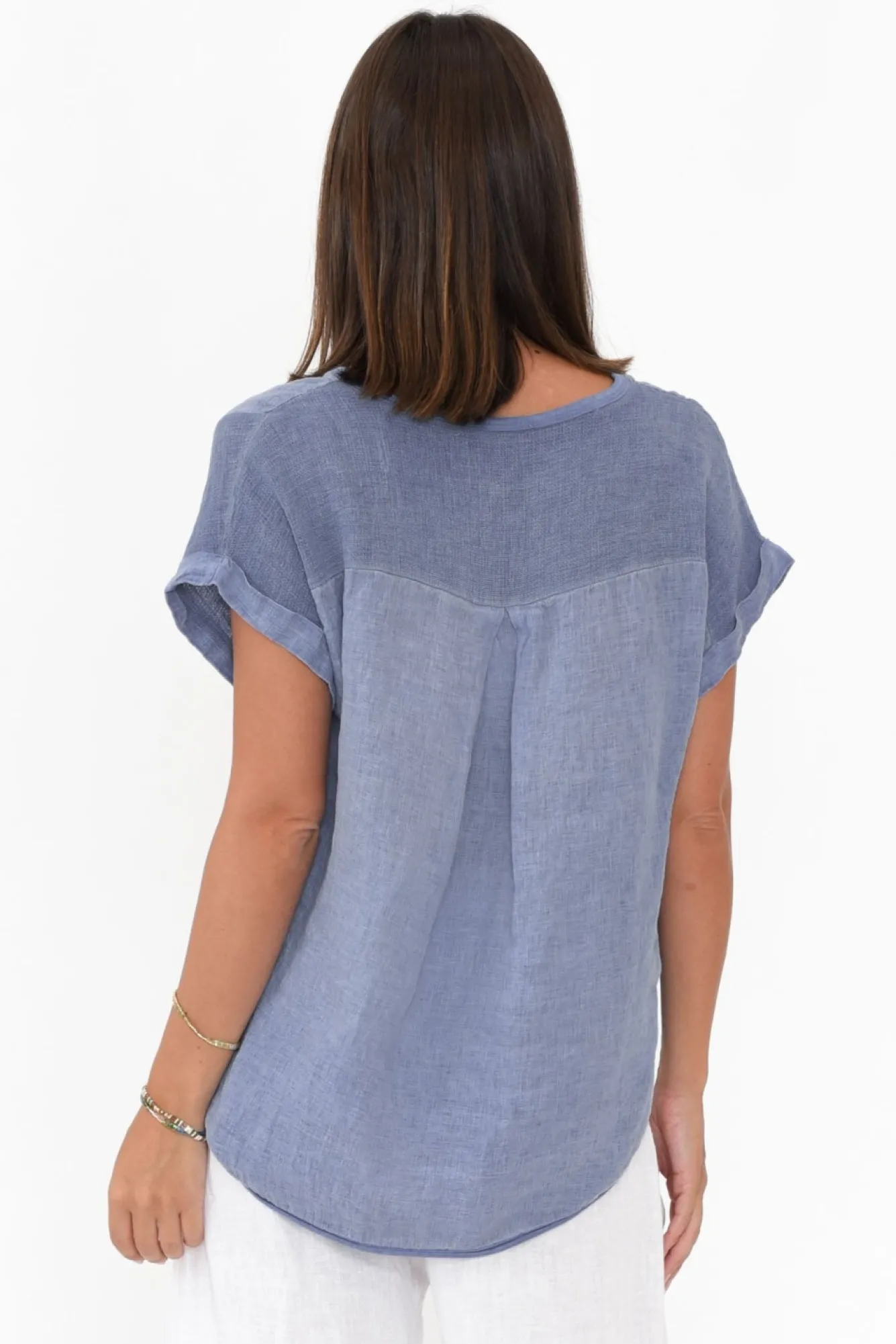 Fit: Runs Small. Refer To Size & Fit Tab Below For Specific Size RecommendationNNfabric: 50% Linen, 50% CottonNcrafted In ItalyNlightweight And Non-Stretch Fabric, Offering Wonderful BreathabilityNstriking V-Neckline Nsimple Short Sleeves With Cuffed Detail Nstraight-Cut Silhouette Elevated By Woven Feature Panels On The Front And BackNback Pleat Detail For Ease Of Movement NNhi-Lo Hemline Falls To Hip-Skimming LengthNNNcare: Cool Gentle Machine Wash RecommendedNNcolour: Washed Light Steel Blue Shade