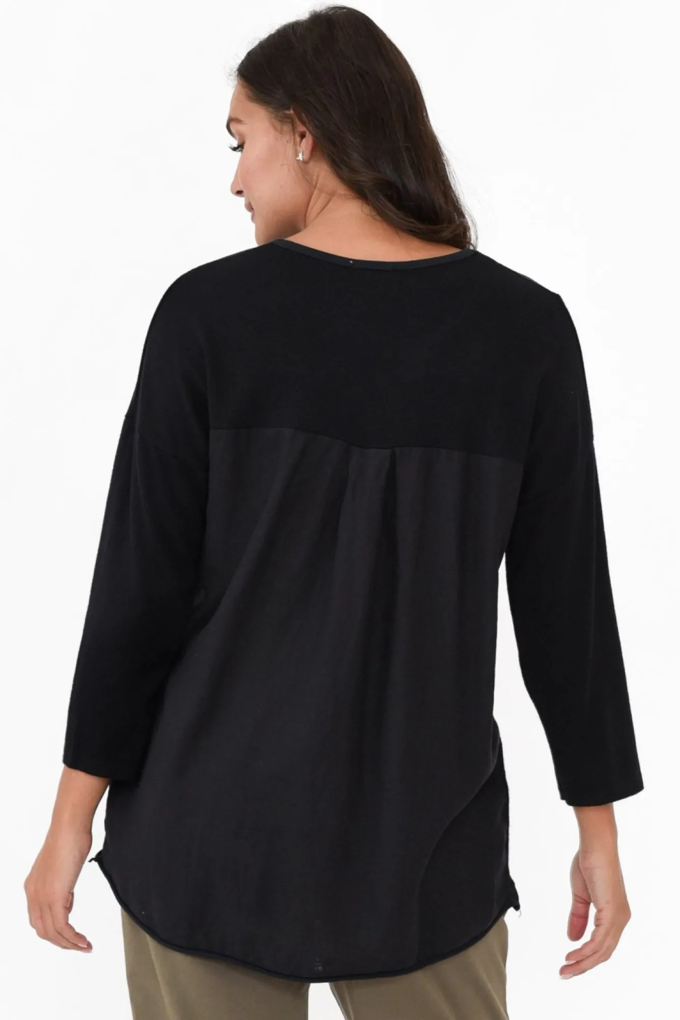 Fit: True. Refer To Size & Fit Tab Below For Specific Size RecommendationNNfabric: 30% Linen, 30% Cotton, 40% ViscoseNlightweight And Breathable Linen Body With Soft And Stretchy Cotton Side Panels And Knit SleevesNNv NeckNN3/4 Length Cotton Knit SleevesNNpleated Back For Easy And Comfortable MovementNNhi-Lo Rolled HemNhip Skimming LengthNNcare: Cool Gentle Machine Wash RecommendedNNcolour: Classic Black Colour