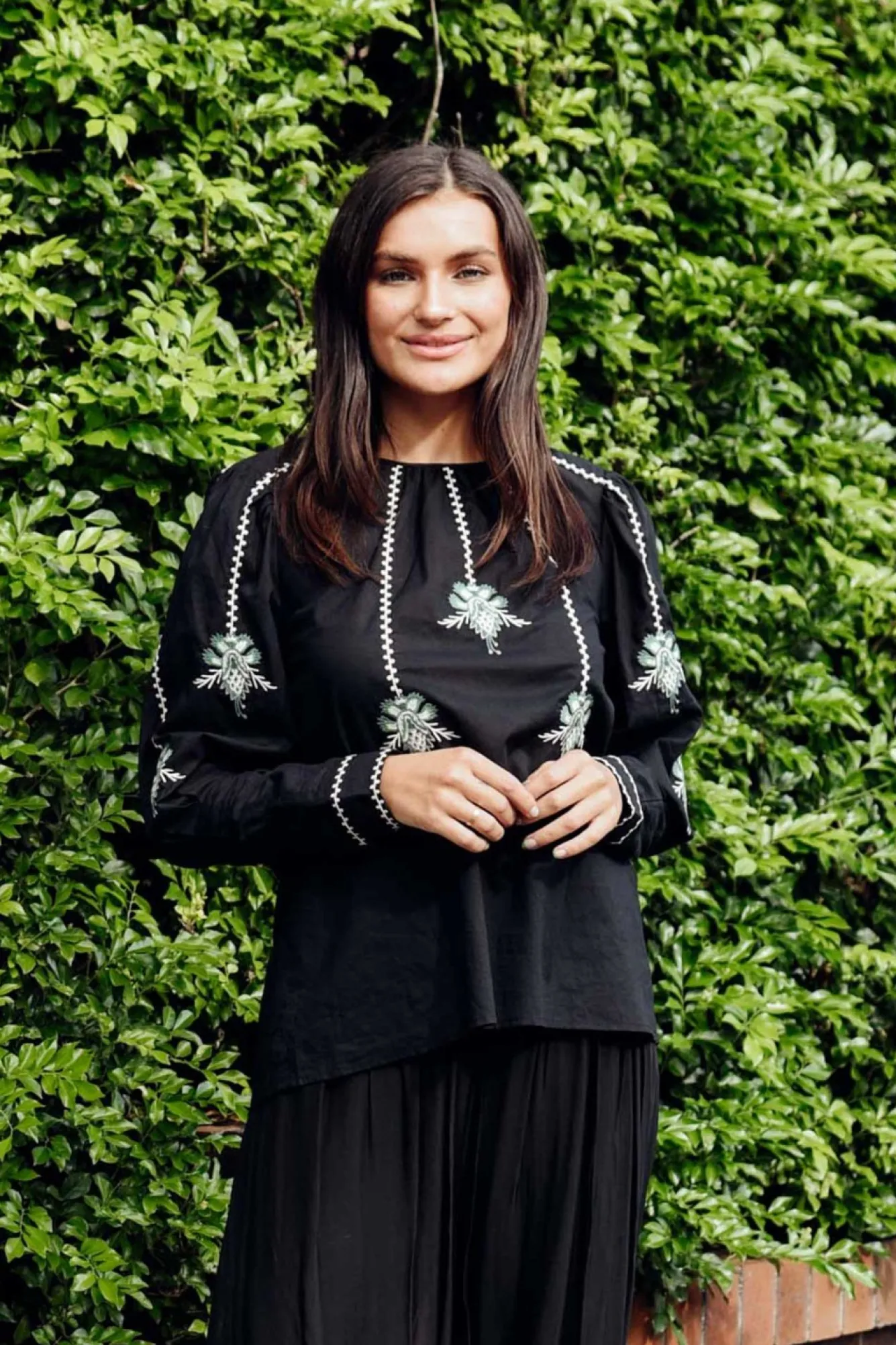 Be the first to review “Cotton Tops<Once Was Grove Black Embroidered Bishop Sleeve Top” Cancel reply