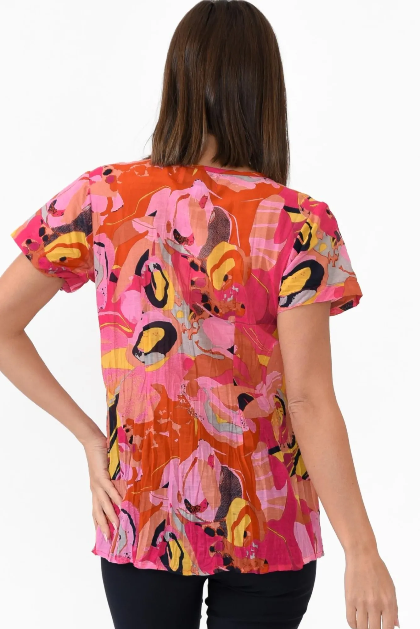 Fit: True To Size. Refer To Size & Fit Tab Below For Specific Size RecommendationNNfabric: 100% CottonNa Gorgeous Vibrant Summer Top Made From Ultra-Lightweight, Breathable And Non-Stretch Cotton With A No-Fuss Crinkle TextureNdesigned With A Soft V-NecklineNclassic Short SleevesNNdelicate Pleating Falls Over The Bust Creating A Relaxed A-Line FitNstraight Hemline Skims The HipsNNNcare: Cool Gentle Hand Wash RecommendedNNcolour: Pink And Red Floral Print With Hints Of Yellow And Black NNfabric Tip: Twist The Garment, Fold In Half And Secure With A Rubber Band To Store After Washing And Drying To Keep The Crinkle AliveNNnote: Please See Photos Rather Than Video For Most Accurate Colour.