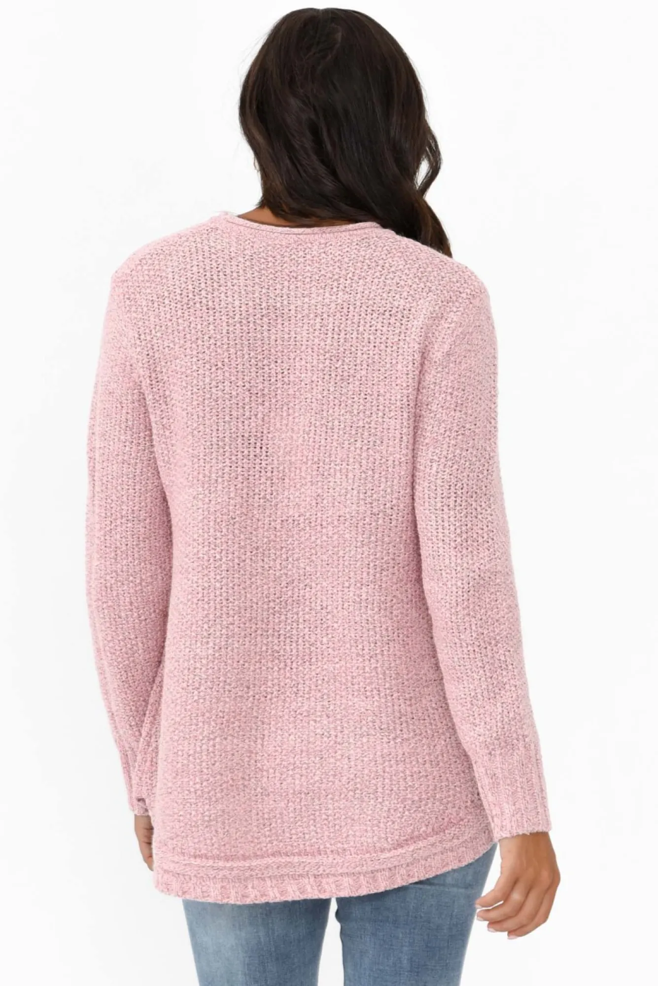 Fit: True To Size. Refer To Size & Fit Tab Below For Specific Size RecommendationNNfabric: Cotton/PolyesterNa Midweight Loose Knit Style Jumper Designed For Those Cooler Days NNsimple Full-Length Sleeves With Ribbed Detail At The Cuffs Nround Neckline With Curled Trim Nversatile Straight Silhouette With Non-Functional Tortoiseshell Buttons Running Diagonally From Waist To Hem Ncurved Hemline Falls To Hip-Length NNNcare: Cool Gentle Hand Wash RecommendedNNcolour: Soft Pink Shade