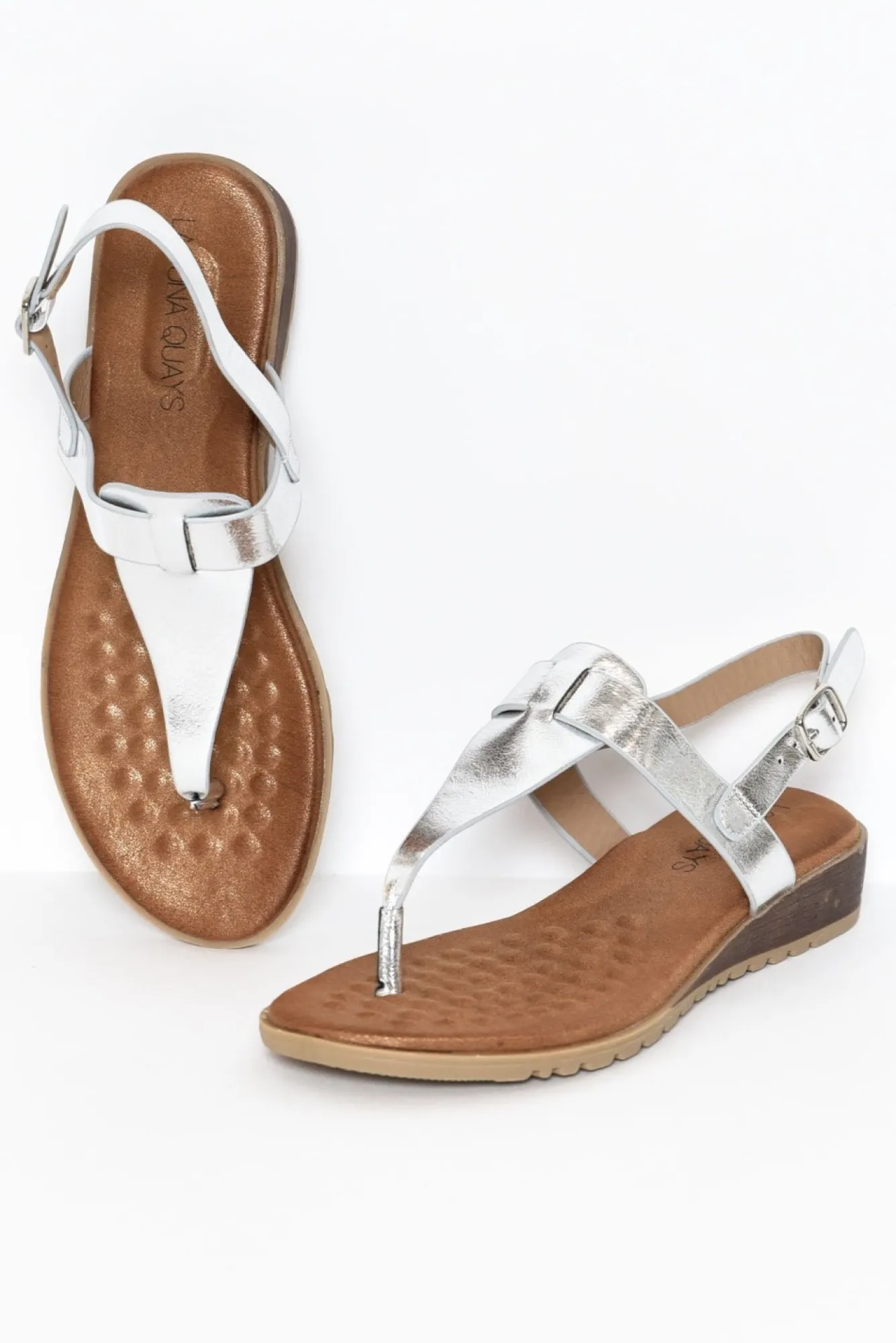 True To Size: Choose The Size You Would Normally WearNNfit: StandardNelevate All Your Summer Outfits With These Vibrant, Fun And Ultra-Comfortable Sandals!Nfabulous Metallic Silver Upper With Tan SoleNthong Style Design With An Adjustable Buckle Closure To Secure The AnkleNdesigned With A Luxurious Cushioned Sole With Dimple Design For Comfort All Day LongNever-So-Subtle Stacked Wedge Provides Slight Elevation To Relieve The HeelsNgrooved Non-Slip Sole Prevents Slips And TripsNupper: SyntheticNlining: SyntheticNNsole: SyntheticNNheel Height: 2.7CmNNNproduct Care: Spot Clean Only. Use A Damp Cotton Wool Swab Stick And Clean The Affected Areas.