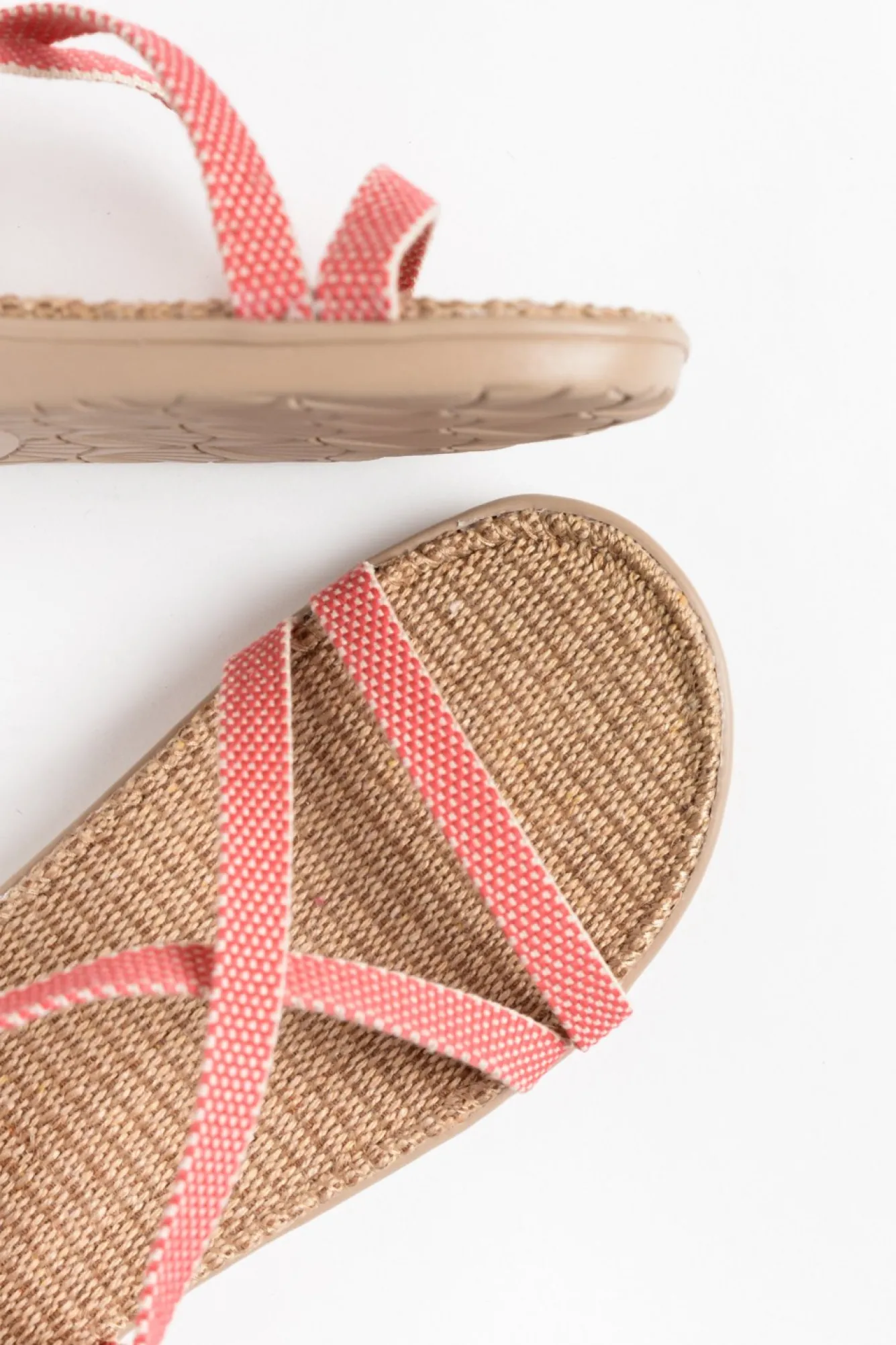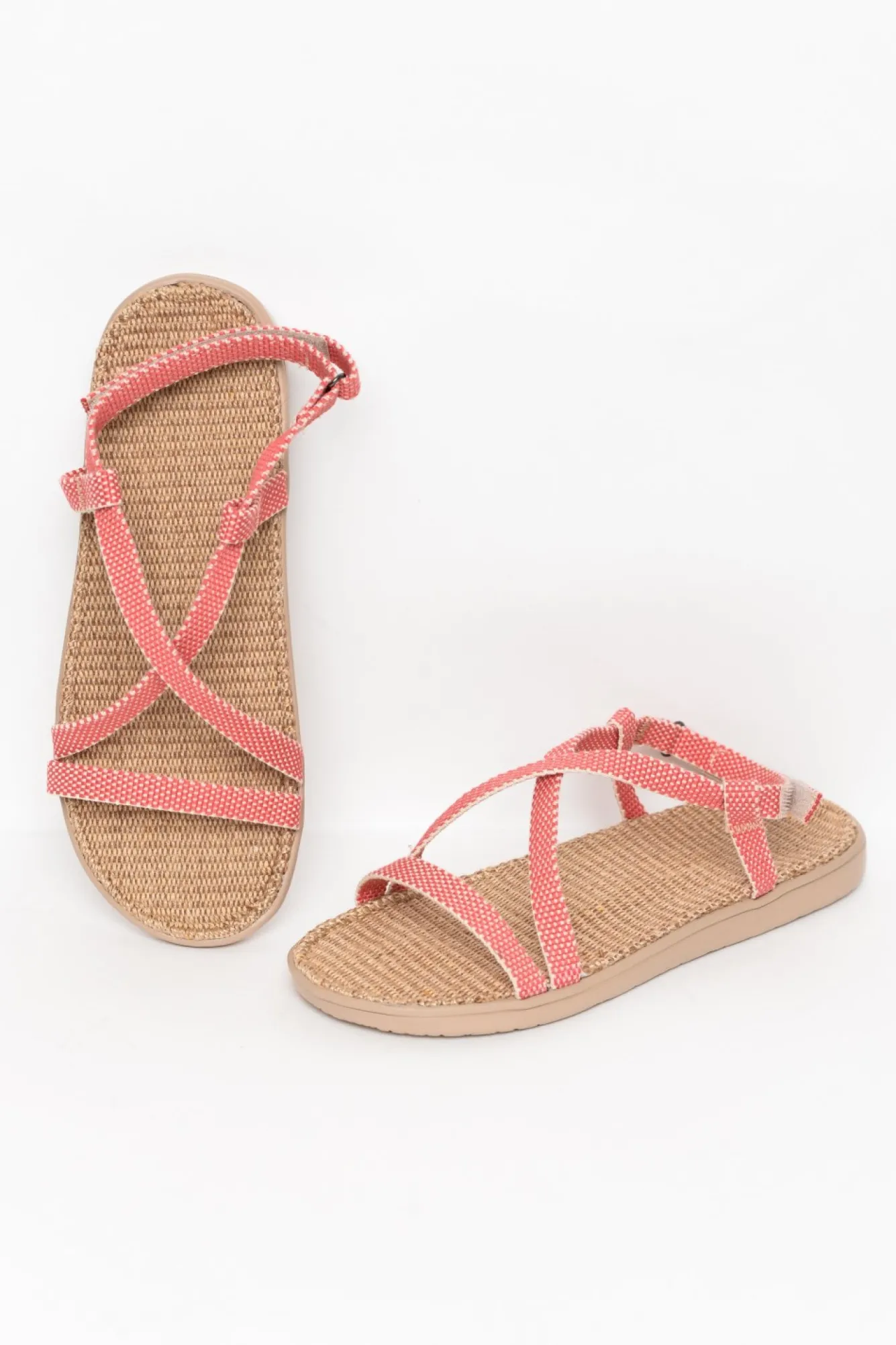 Fit: Oversized: We Recommended Sizing Down One Size. Refer To Size & Fit Tab Below For Specific Size Recommendation NNfit: Wide FitNred And White Strappy SandalNadjustable Velcro Ankle Strap Nrubber Sole Making It The Perfect Beach ShoeNpadded And Supportive Jute InsoleNupper: Cotton WebbingNlining: 100% Natural JuteNsole: RubberNheel Height: 2.3CmNNshoe Care:Spot Clean With Damp Cloth