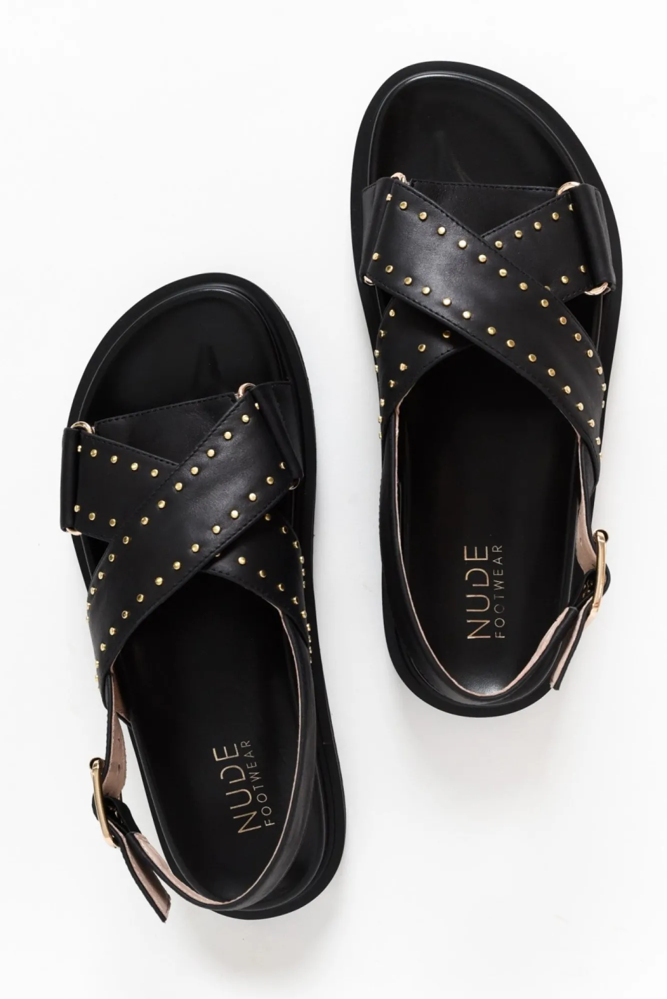 True To Size: Pick The Size You Would Normally Buy Or If In-Between Sizes We Recommend Going Down One SizeNN Fit: Standard – Wide Nstep Out In Style With These Versatile Leather Sandals!Nstatement Crossover Straps Cover The Expanse Of The Foot Nfeaturing Yellow Gold Hardware And Stud Detailing For An Elevated LookNadjustable Buckle At The Ankle For The Perfect Fit Nsmooth Leather Footbed With A Slightly Moulded Designed Nchunky, Black Corrugated Non-Slip SoleNNupper: LeatherNNlining: LeatherNsole: Man-MadeNheel Height: 3.5Cm NNshoe Care: Use A Water And Stain Repellent Spray To Protect Before Wearing. To Clean Use A Damp Cloth And Spot Clean.