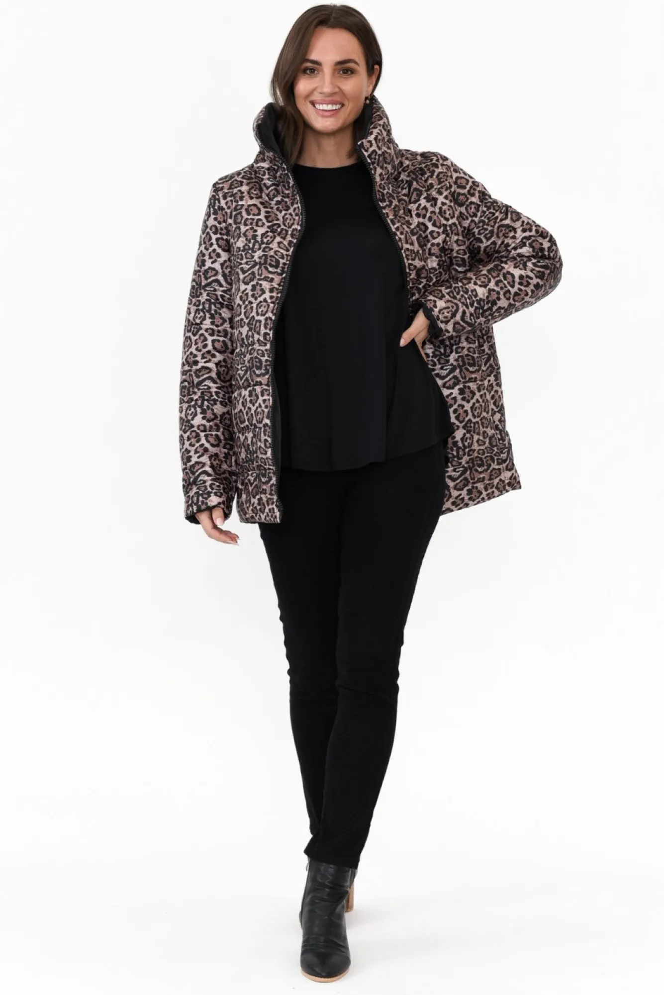 Jackets<Hammock u0026 Vine Hansel Brown Leopard Reversible Puffer Jacket