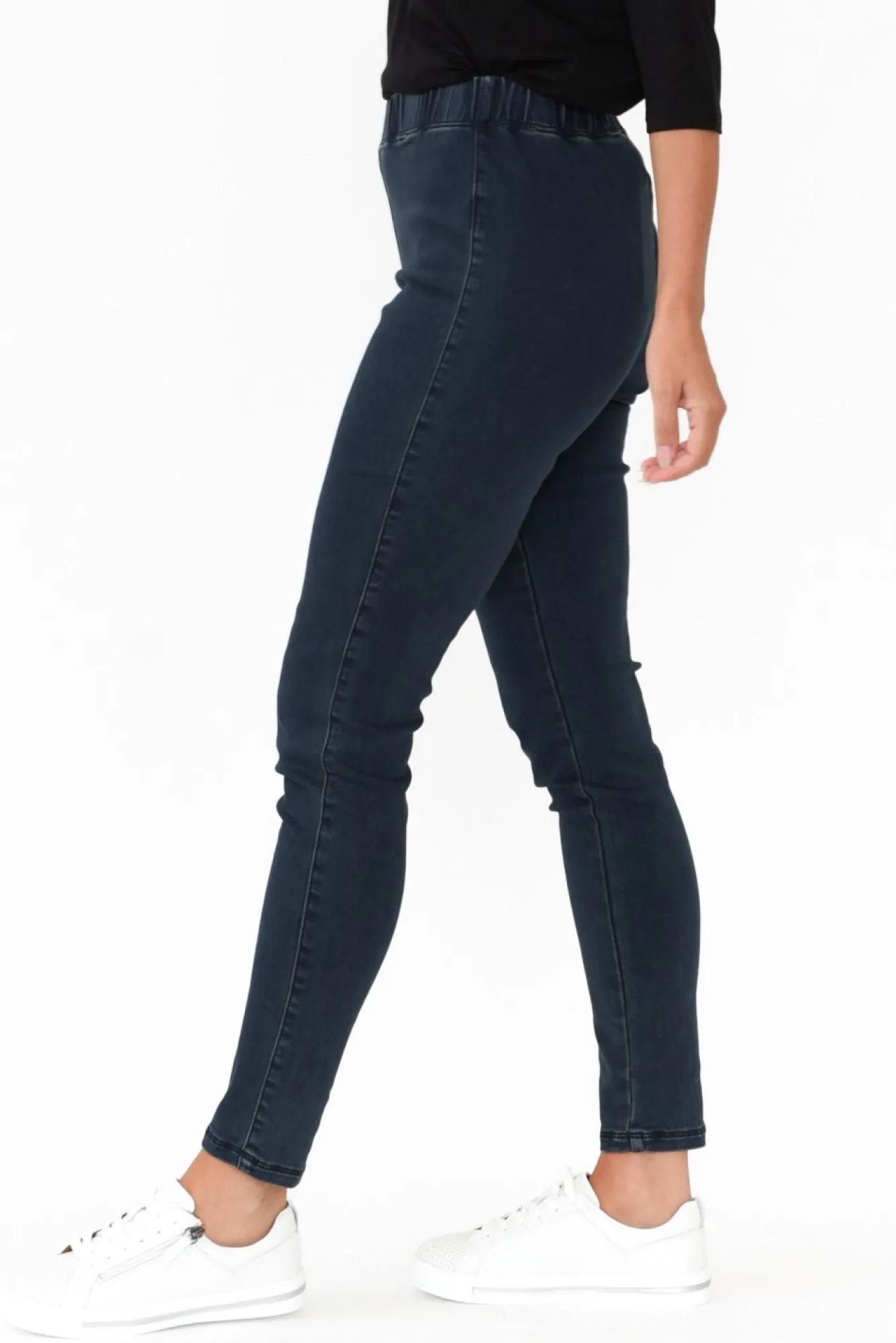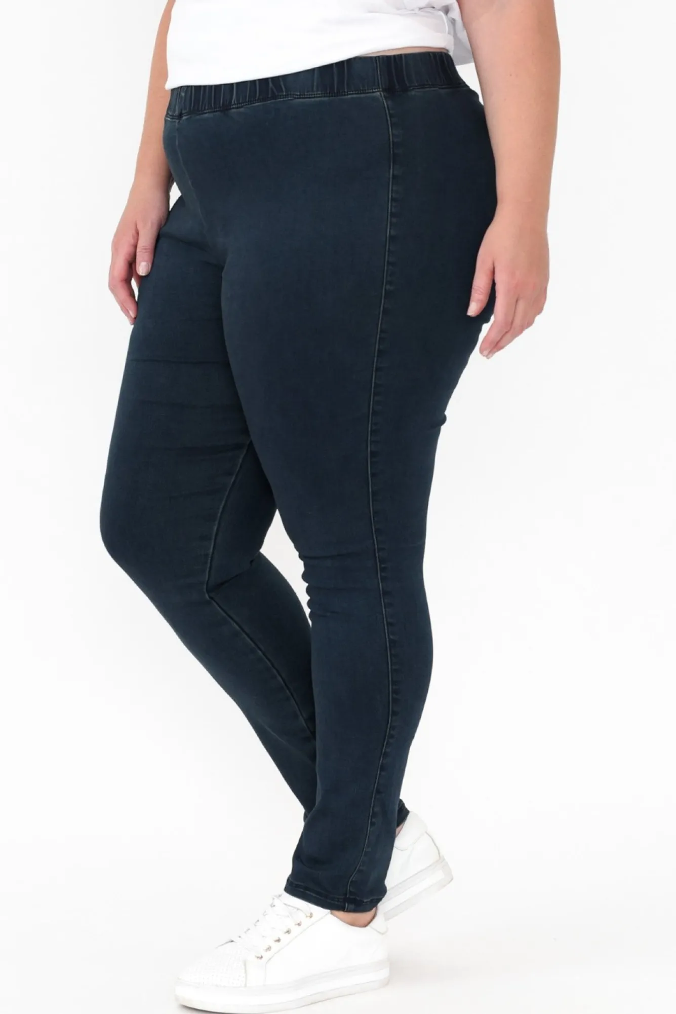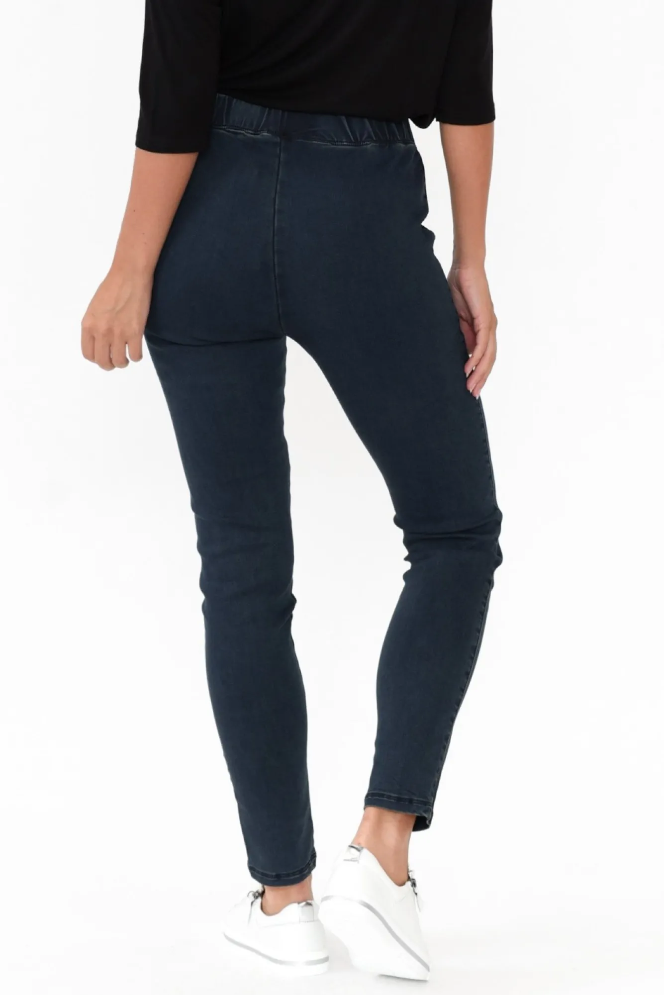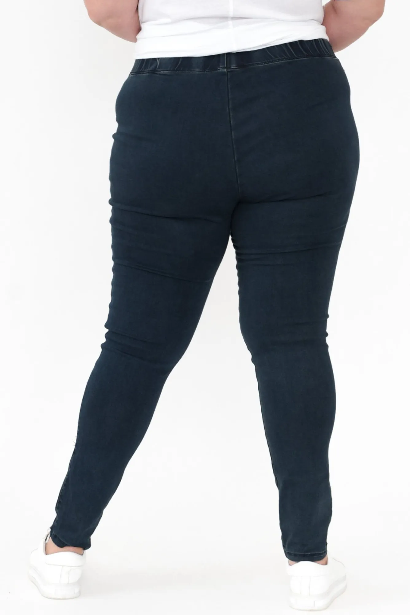 Fit: True To Size. Refer To Size & Fit Tab Below For Specific Size Recommendation NNfabric: 98% Cotton, 2% ElastaneNultra-Comfy Printed Denim Look Pants, Made From A Cotton Blend With Ample StretchNthick And Stretchy Ruched Elastic WaistbandNeasy Pull-On StyleNslimline Silhouette For A Sleek LookNfull-Length Pants Skim The AnkleNNdesigned To Fade NNcare: Cool Gentle Machine Wash RecommendedNNcolour: Dark Blue Denim Shade