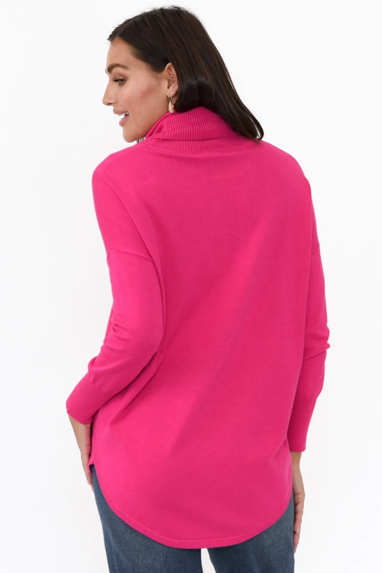 Fit: True To Size. Refer To Size & Fit Tab Below For Specific Size Recommendation NNfabric: Viscose/Nylon Nlightweight And Delicate Knit With A Comfortable Stretch And Silky Soft Hand FeelNrolled Turtleneck With Ribbed DetailNfull-Length Sleeve With A Tapered CuffNNstraight Silhouette In A Relaxed FitNNcurved Hem Falls To The HipsNNNcare: Cool Gentle Hand Wash RecommendedNNcolour: Fushcia Pink