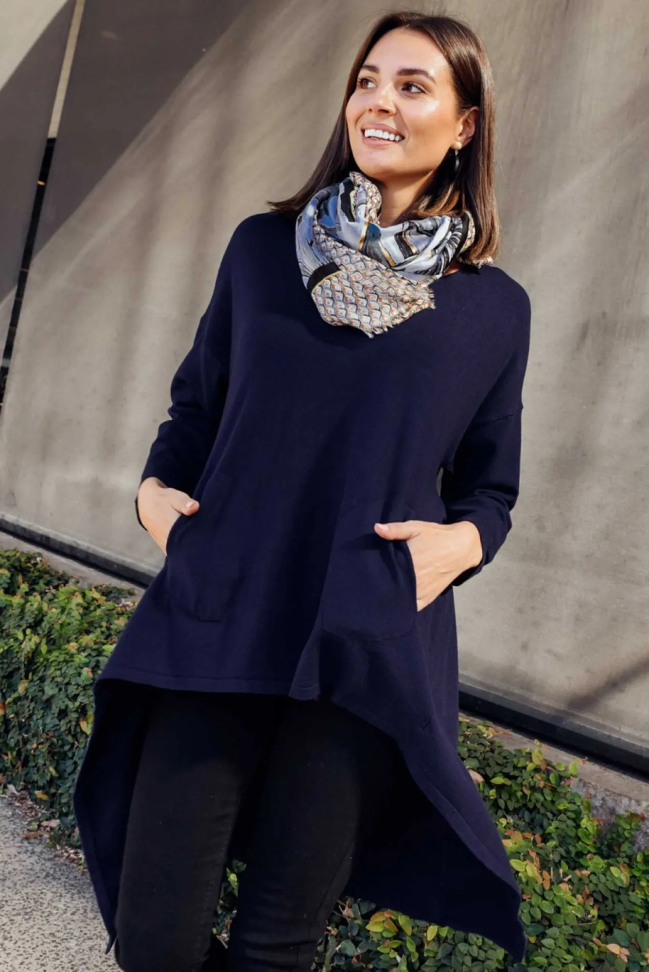Knitwear<Cali and Co Addy Navy Hi Lo Knit Jumper