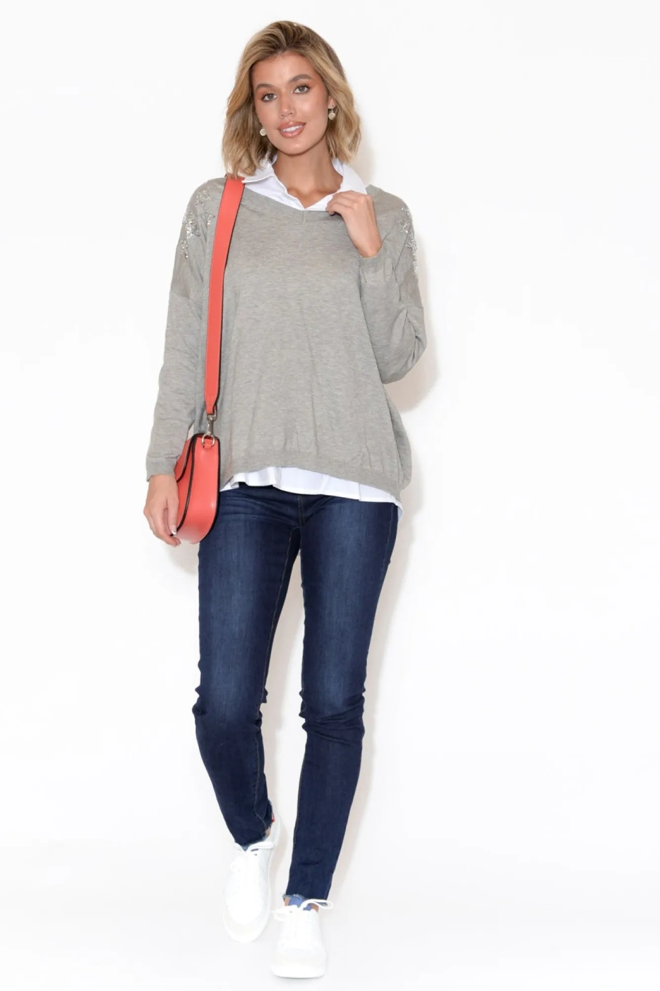 Knitwear<Label of Love Erika Grey Sequin Embellished Knit