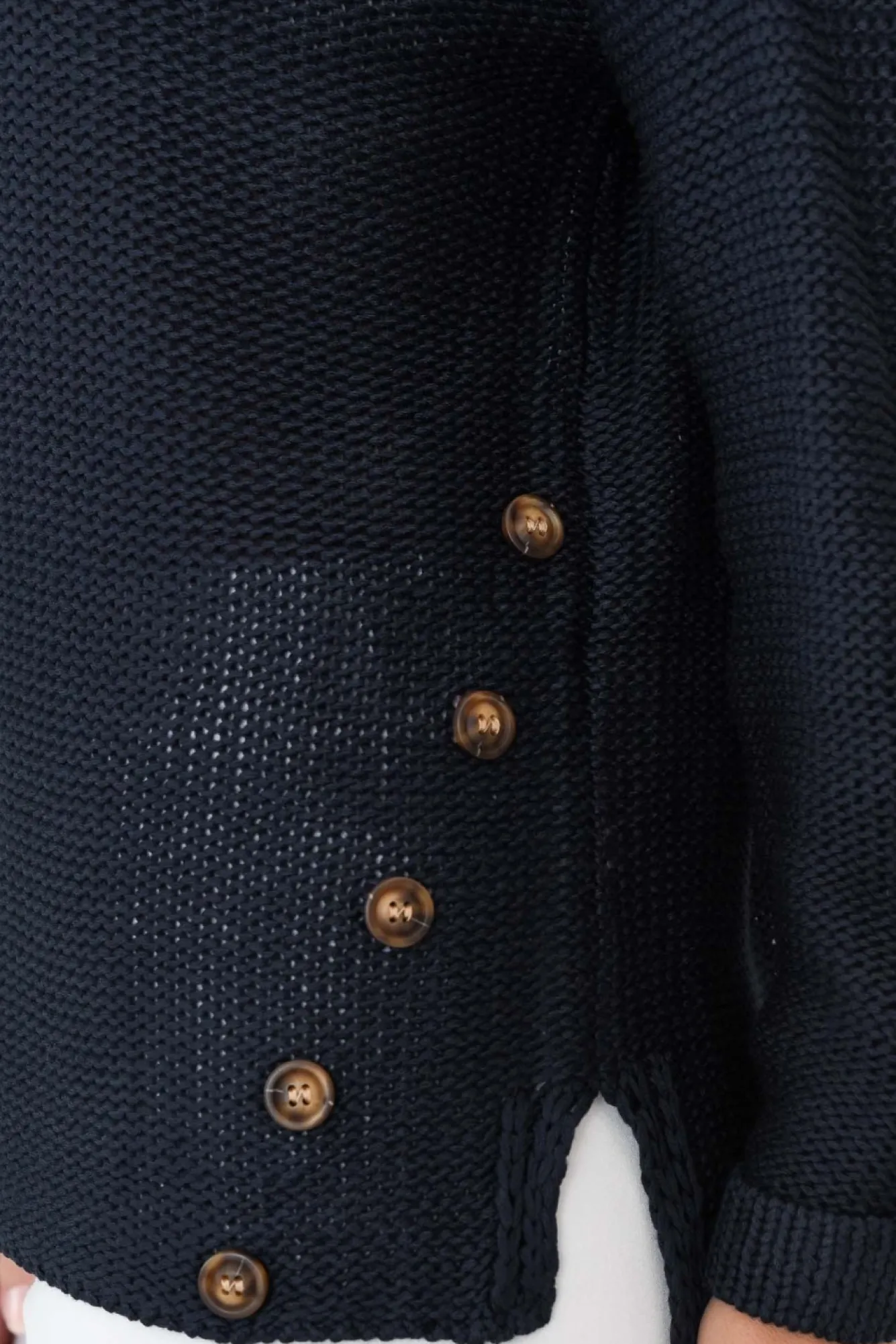 Fit: True To Size. Refer To Size & Fit Tab Below For Specific Size RecommendationNNfabric: Cotton/Polyester Nan Easy Throw-On-And-Go Jumper Made From Loose Knit Cotton-Blend Fabric, With A Gorgeous Soft And Breathable FeelNv-Neckline Is Enhanced By A Knitted Border Nfull-Length Sleeves With A Fixed Folded Cuff For A Casual Look Neveryday Straight Silhouette NNbrown Non-Functional Buttons Run Diagonally From Waist To HemNflattering Hi-Lo Hemline Drapes Below-Hip LengthNNcare: Cool Gentle Hand Wash RecommendedNNcolour: Deep Navy Shade