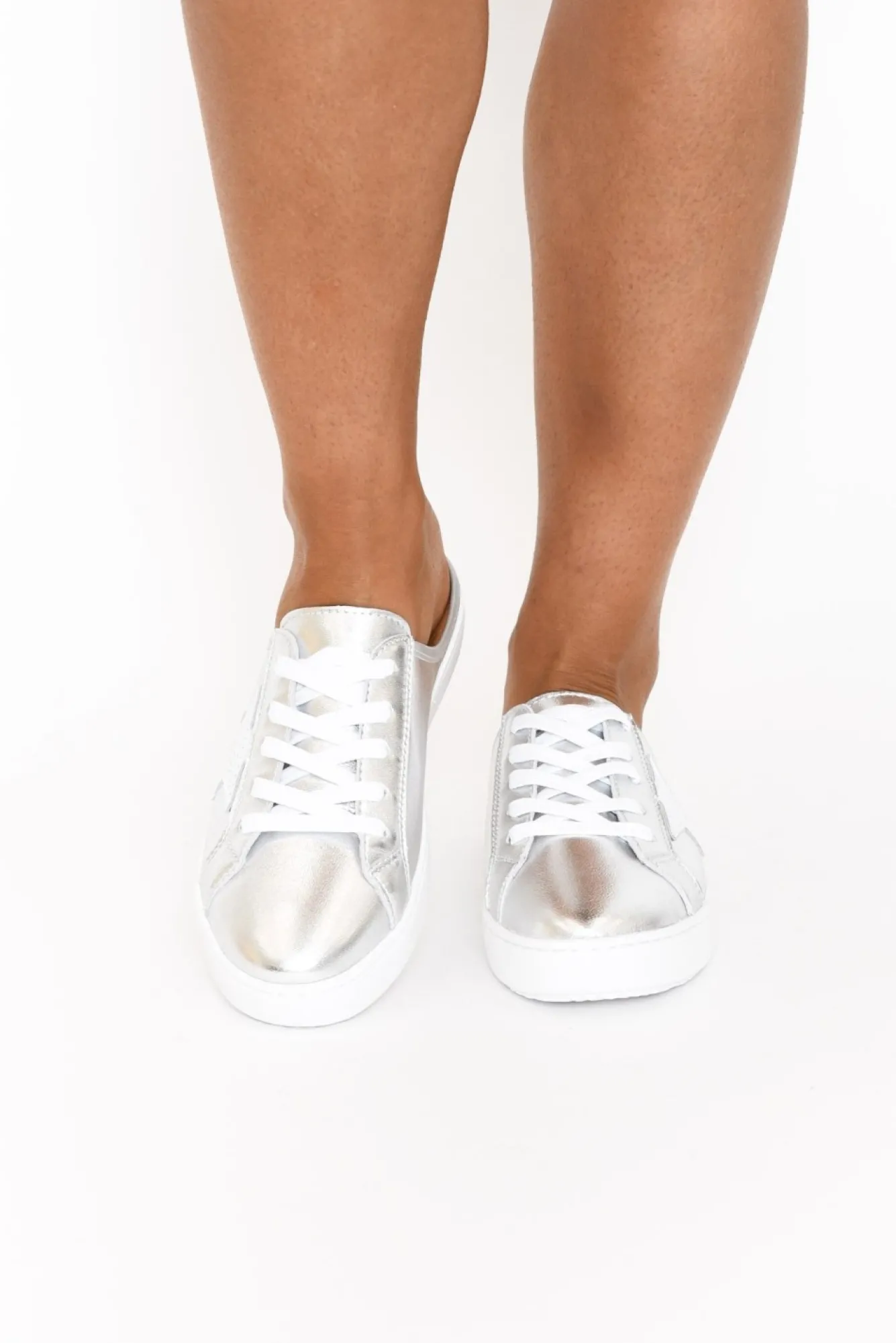 Leather Sneakers<Alfie and Evie Vango Silver White Leather Mule Sneaker