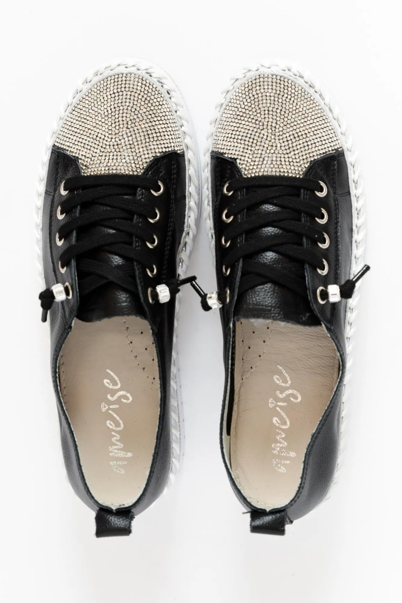 Be the first to review “Leather Sneakers<Ameise Sky Black Leather Diamante Sneaker” Cancel reply
