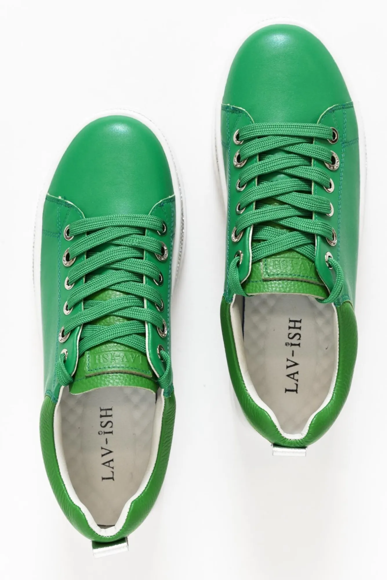 True To Size: Pick The Size You Would Normally BuyNNNfit: Standard – WideNstriking Emerald Sneakers With A Sparkly Twist!Nmatching Green Laces Complement The Silver And Diamante Embedded Eyelets Nfeaturing A Strip Of Diamantes On The Platform Sole And A Silver Heel Detail For Extra ShimmerNcomfortable Lightly Padded Insole For ComfortNwide And Comfortable Toe Box Suitable For Wide Feet And Pesky BunionsNremovable Insole Can Be Swapped For OrthoticsNthick White Corrugated Rubber Sole Prevents SlippingNupper: LeatherNNlining: SyntheticNsole: SyntheticNheel Height: 3.5CmNshoe Care: Use A Water And Stain Repellent Spray To Protect Before Wearing. Clean With A Damp Cloth And Polish Afterwards.