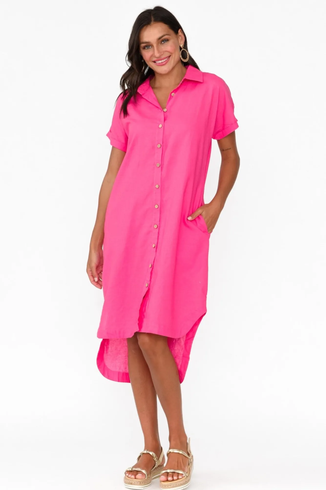 Linen Dresses<Cali and Co Mareli Hot Pink Linen Blend Dress