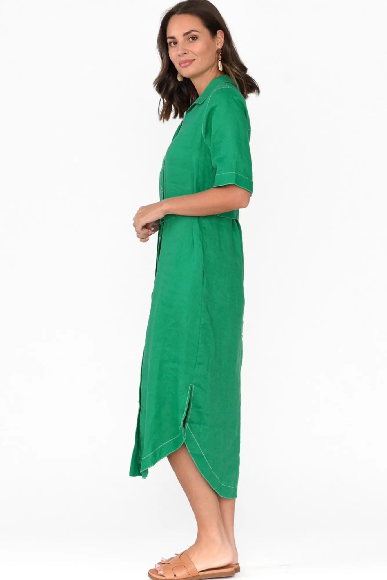 Fit: True To Size. Refer To Size & Fit Tab Below For Specific Size RecommendationNNfabric: 100% Linen Nlightweight And Wonderfully Breathable Linen With A Classic Woven Texture NNcollared Neckline Complements Button FrontNcontrast Stitching Throughout Elevates This StyleNhalf Length, Tee-Style SleevesNoptional Matching Waist Belt With Belt Loops To Create Shape Through The Midline Nstraight Silhouette Falls To A Midi LengthNNtwo Discreet Hip PocketsNNcurved Hem With Side Splits For Ease Of MovementNNNcare: Cool Gentle Hand Wash RecommendedNNcolour: Bright Forest Green With White Contrast Stitching