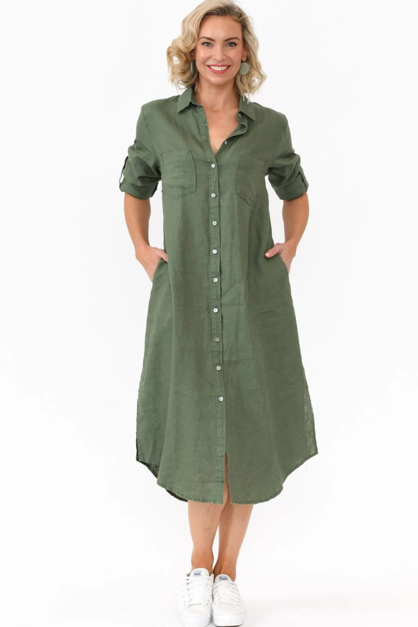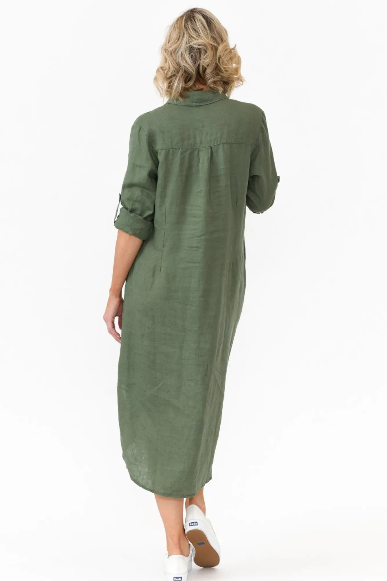 Fit: True To Size. Refer To Size & Fit Tab Below For Specific Size RecommendationNNfabric: 100% LinenNbreezy Lightweight And Non-Stretch Linen Offering Wonderful Breathability And A Natural Textured Hand Feel NNcrisp Collar Complements The Button-Down Front Nfull-Length Sleeves Can Be Easily Rolled Up And Secured With Button Fastening NNthrow-On-And-Go Relaxed Shirt Dress Design – A Transanal Wardrobe Staple!NNtwo Front Feature Pockets On The Bust And Two Discreet Side Seam PocketsNcurved Hi-Lo Hemline With Side Splits For Ease Of Movement NNfalls Below Knee LengthNNcare: Cool Gentle Hand Wash RecommendedNNcolour: Washed Fern Green Shade